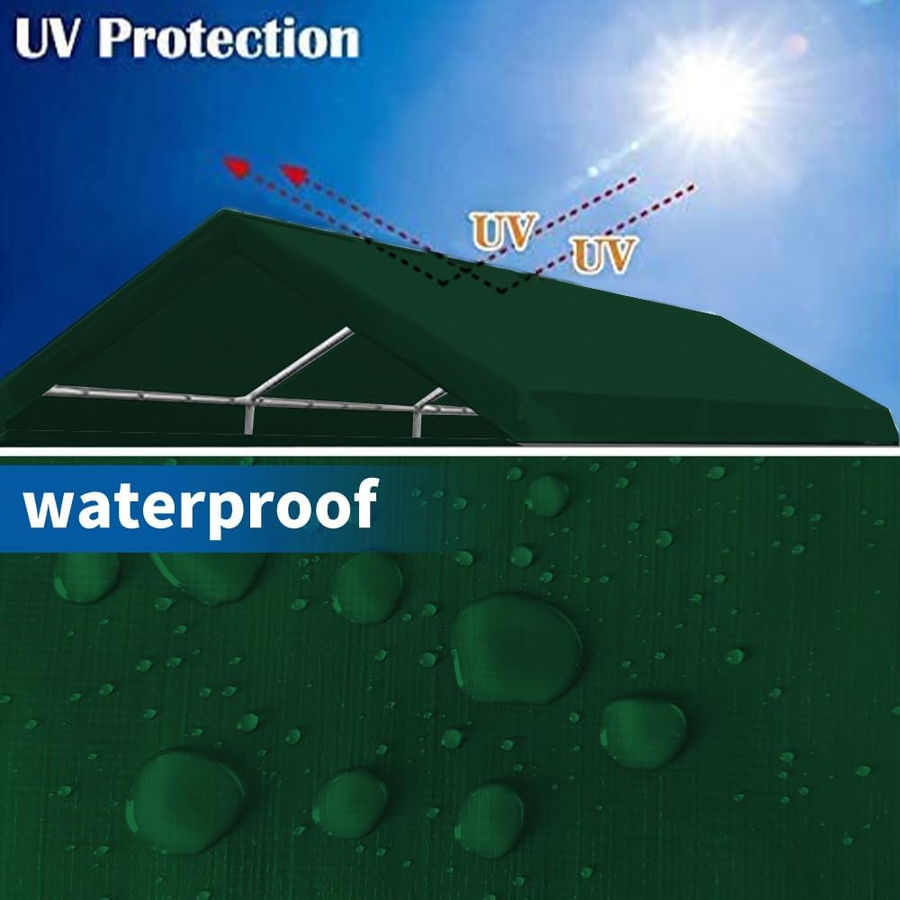 10'x20' Upgraded Carport Replacement Top Canopy Cover for Car Garage Shelter Tent Party Tent with Ball Bungees Green (Only Top Cover, Frame is not Included)