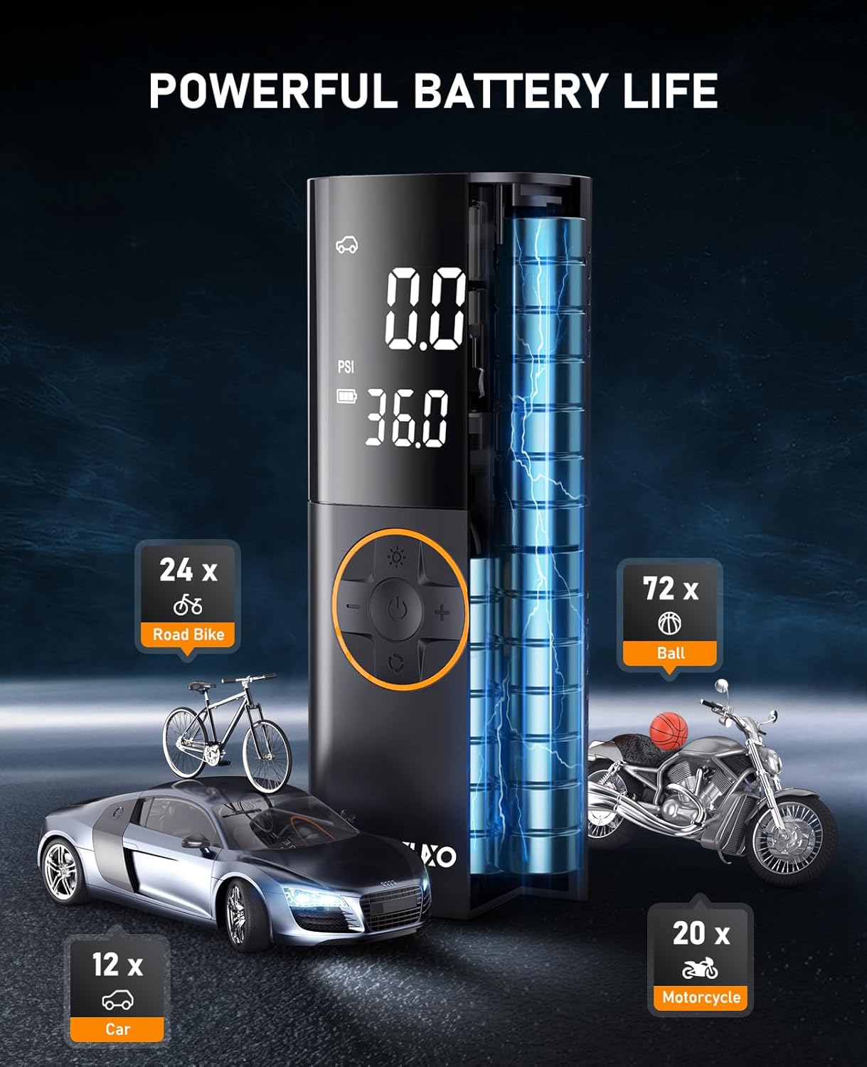 - Compact, Durable, and Always Ready: Sleek, lightweight, and tough enough for daily use, this air pump fits easily in your glove box or backpack. Whether you're at home, on a road trip, or off the grid, it's the compact solution you can count on—no need to rely on gas station air ever again.