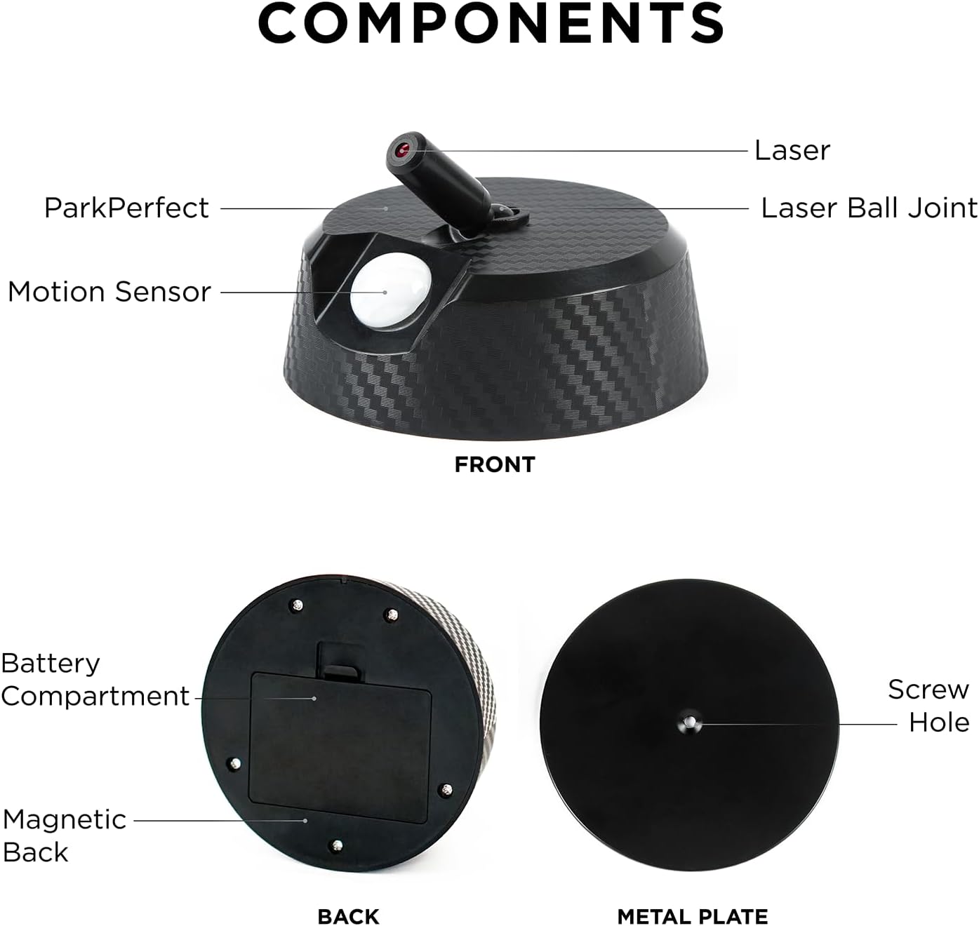 - SIMPLE INSTALLATION: Simply attach the ParkPerfect to any magnetic surface or install the included Metal Back Plate with 3M Tape for quick and easy setup within minutes! The extra-strong 3M tape on the Metal Back Plate secures to virtually any flat surface and the included Drywall Screw and Anchor can confidently fasten everything in place for added (screw and anchor are optional). Absolutely no wiring or electricity is needed!