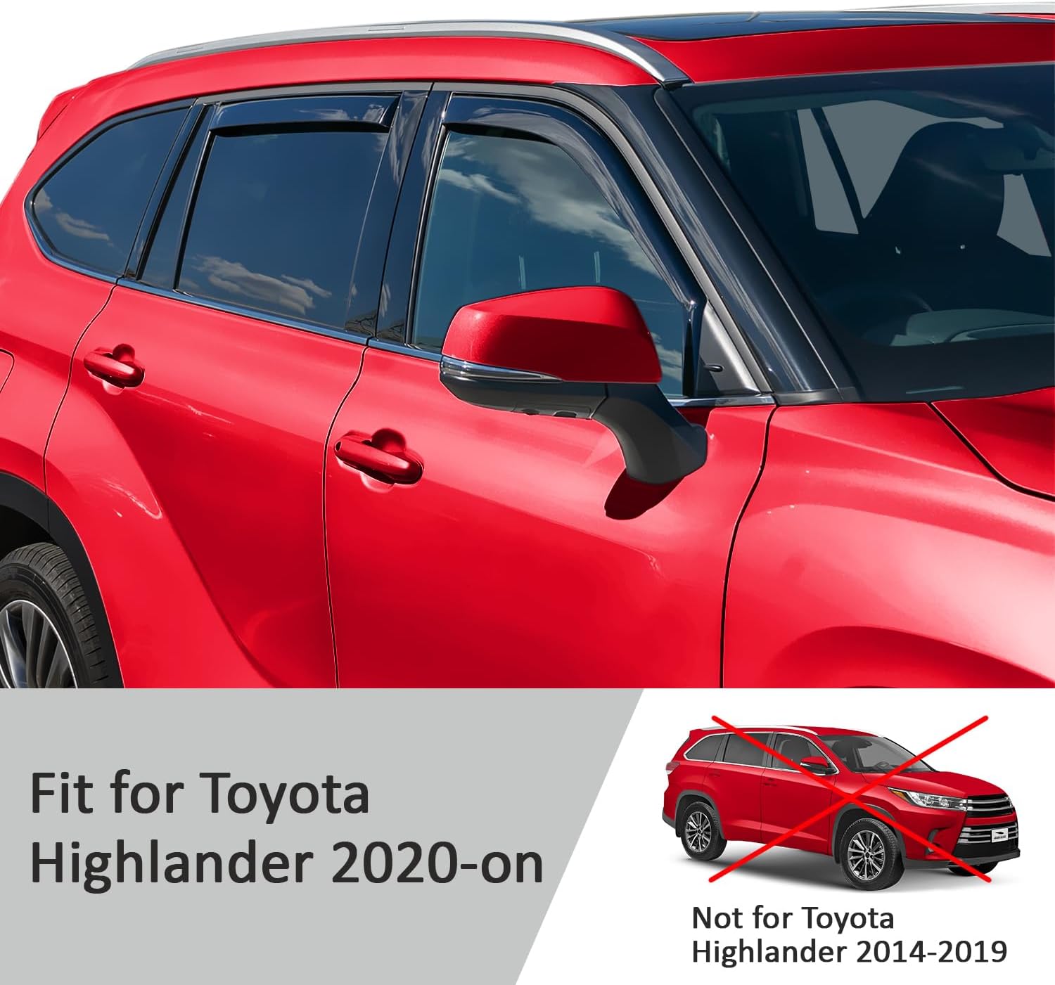 Voron Glass in-Channel Extra Durable Rain Guards for Toyota Highlander 2020-2025, Window Deflectors, Vent Window Visors, 4 Pieces - 200443