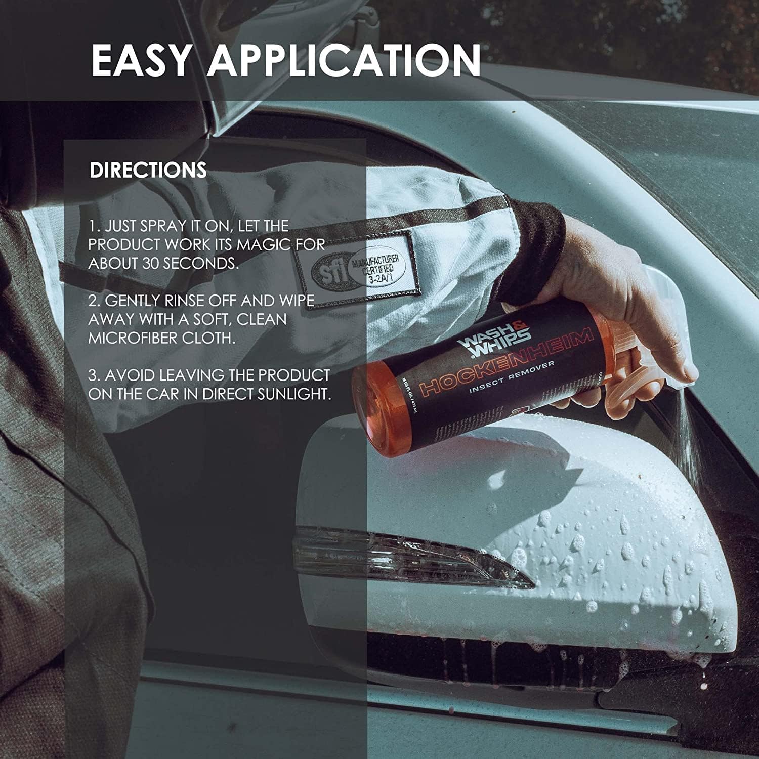 WASH&WHIPS Hockenheim Bug & Insect Remover - Professional Strength, Non-Scratching - Car Detailing, RVs, Boats - 16 fl oz (w/Microfiber Towel)