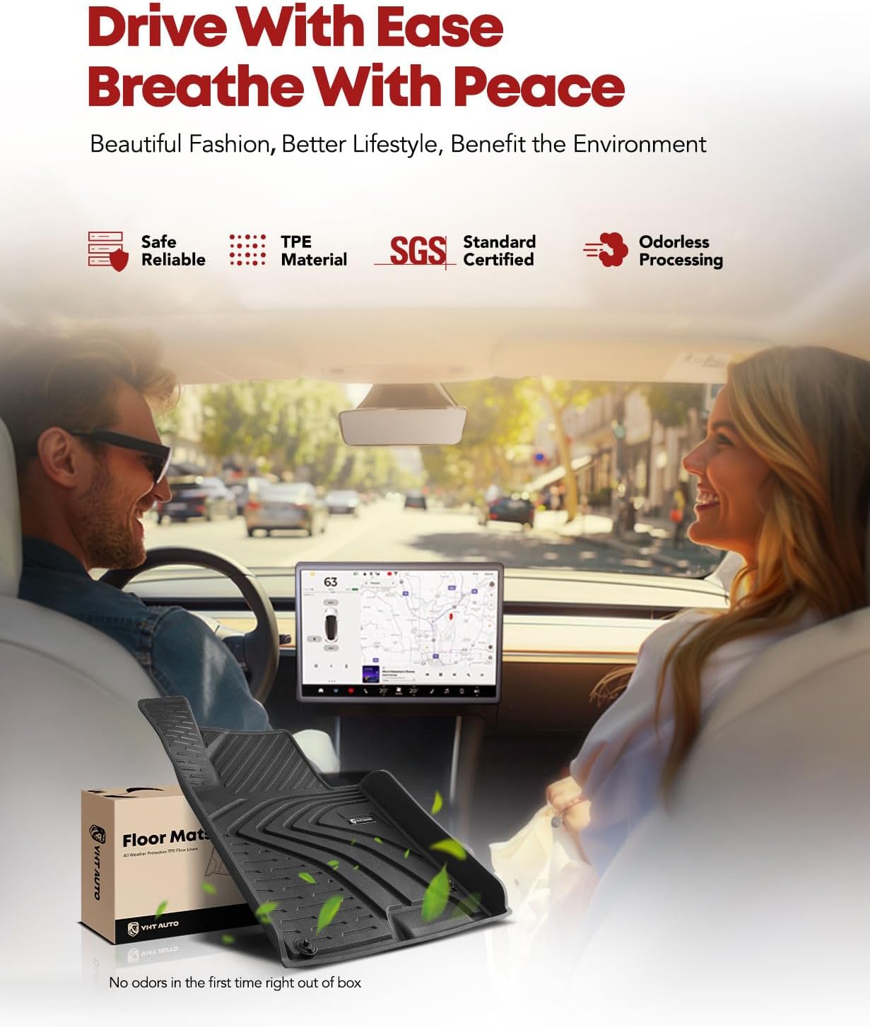 - Odorless floor liners: The floor mat is made of TPE material, which smells odorless and soft touch. Injection molding ensures precision, the anti-skid design on the back can prevent unwanted movement during driving
