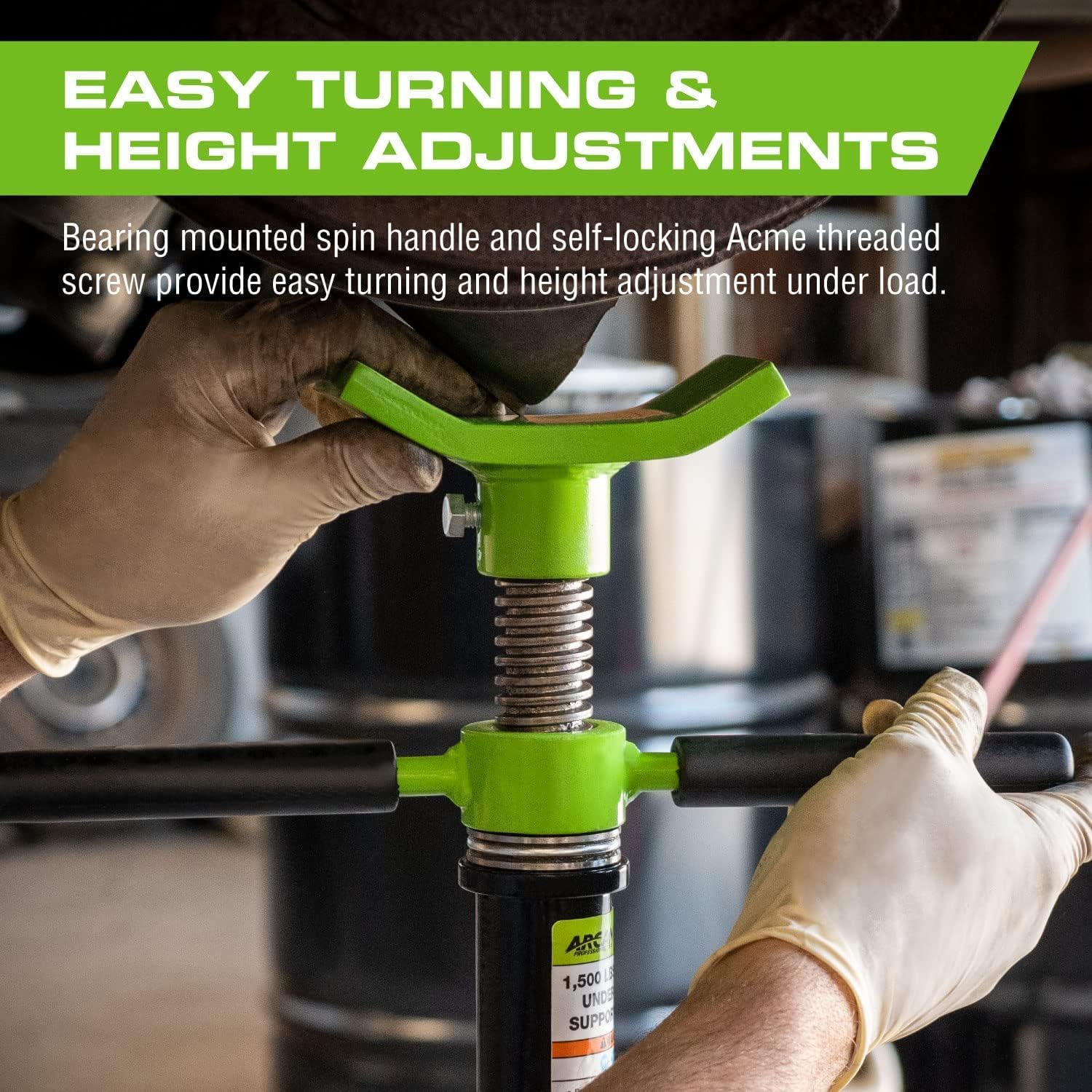 - Smooth Adjustments: Bearing-mounted spin handle allows for precise and effortless height adjustments under load