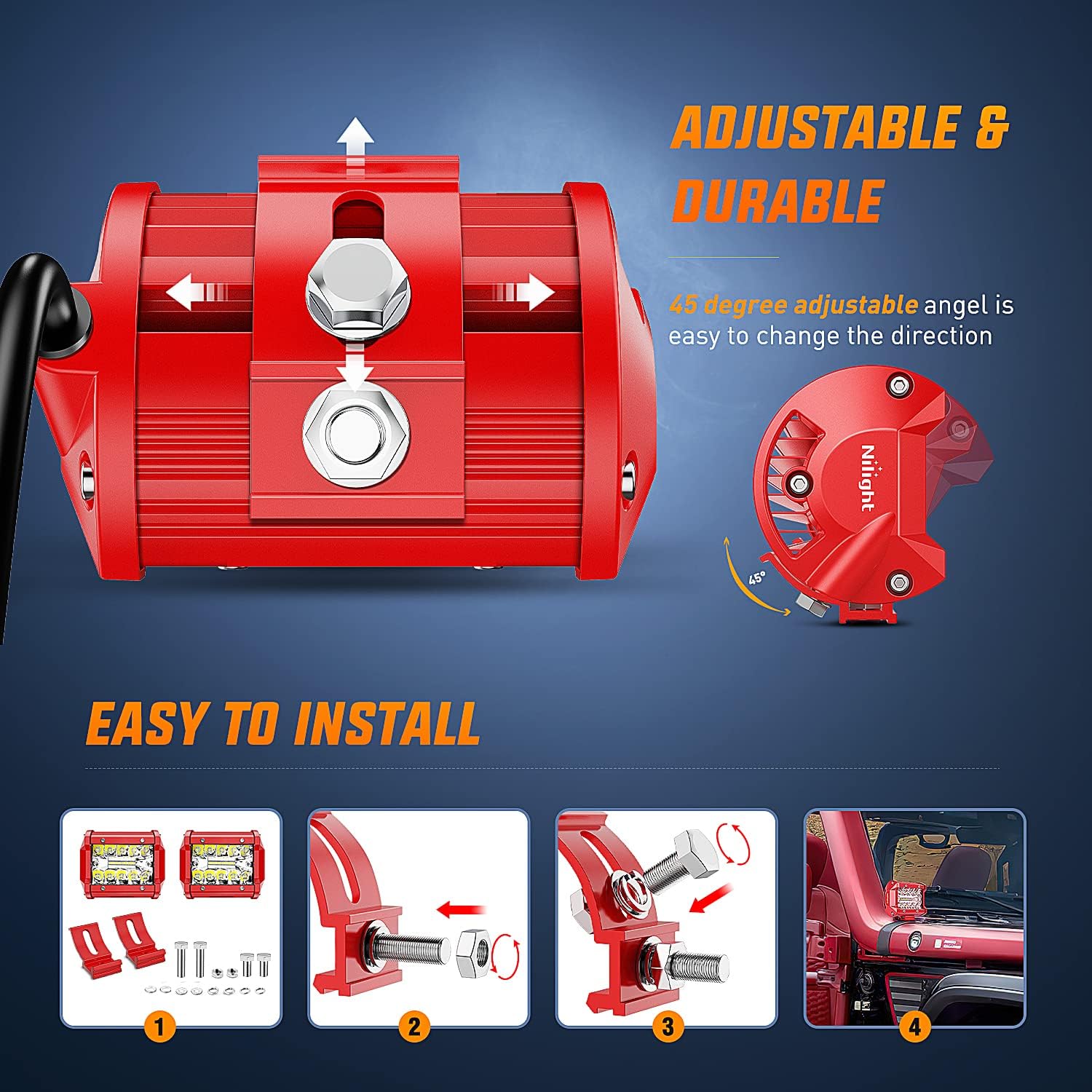 - 【Easy to Install】 Comes with sliding mounting bracket easy to fit. The sturdy bracket can firmly fix the light bar. Quakeproof when passing through rugged terrain