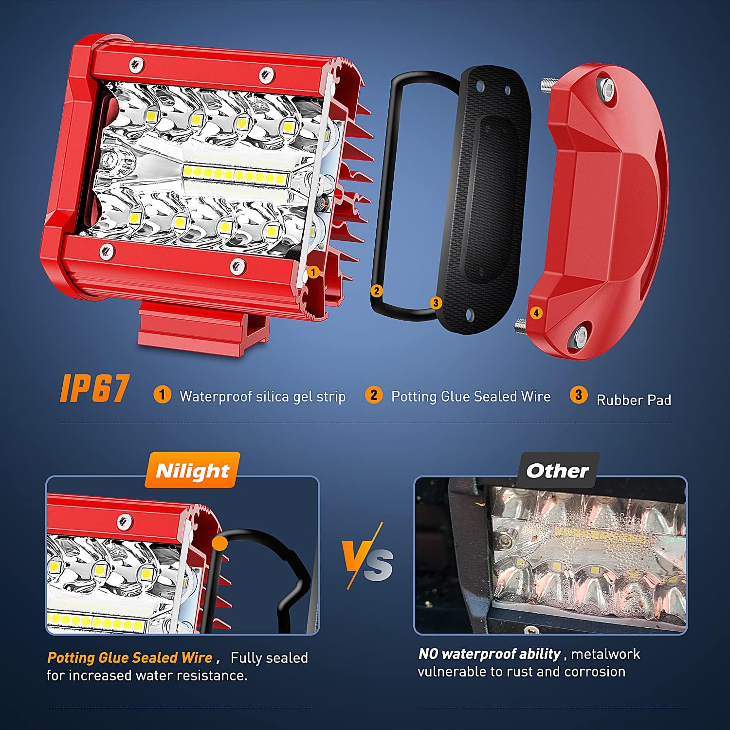 - 【Light up Your Road】Our off road work lights Build-in 20 PCS high intensity 3W LED bright enough. Spot and flood combo Beam LED Pods integrated in a light bar for optimal light spread