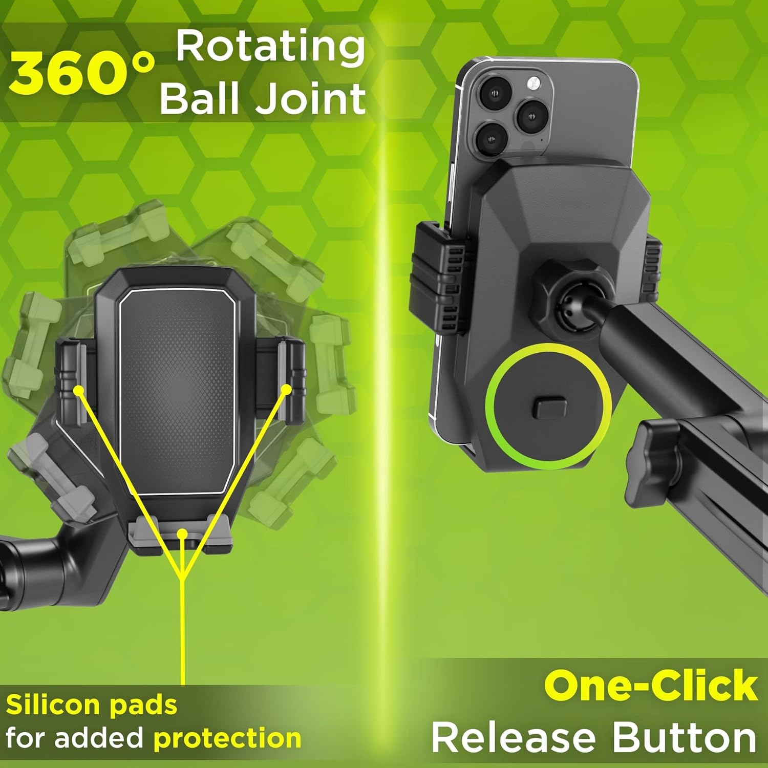 - 🔄【𝐍𝐨-𝐍𝐨𝐧𝐬𝐞𝐧𝐬𝐞 𝐑𝐢𝐝𝐞, 𝐅𝐮𝐥𝐥 𝐇𝐢𝐠𝐡𝐰𝐚𝐲 𝐕𝐢𝐬𝐢𝐛𝐢𝐥𝐢𝐭𝐲】- Truck phone mount 360° rotation lets you position your phone however you want, ensuring a smooth journey with zero blind spots.