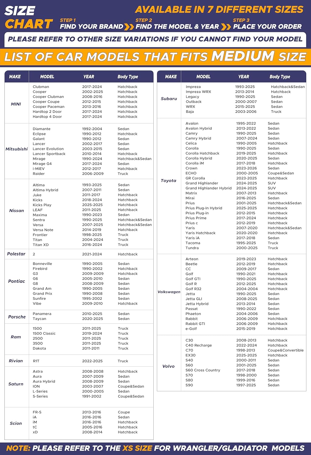 - Snug Fit for Small Vehicles: Measuring 59 inches in length and 29 inches in width, this sun shade for car window fits most small sedans, coupes, hatchbacks, and sports models. It works perfectly as a front window sun shade for car and offers a tailored fit for compact vehicles.