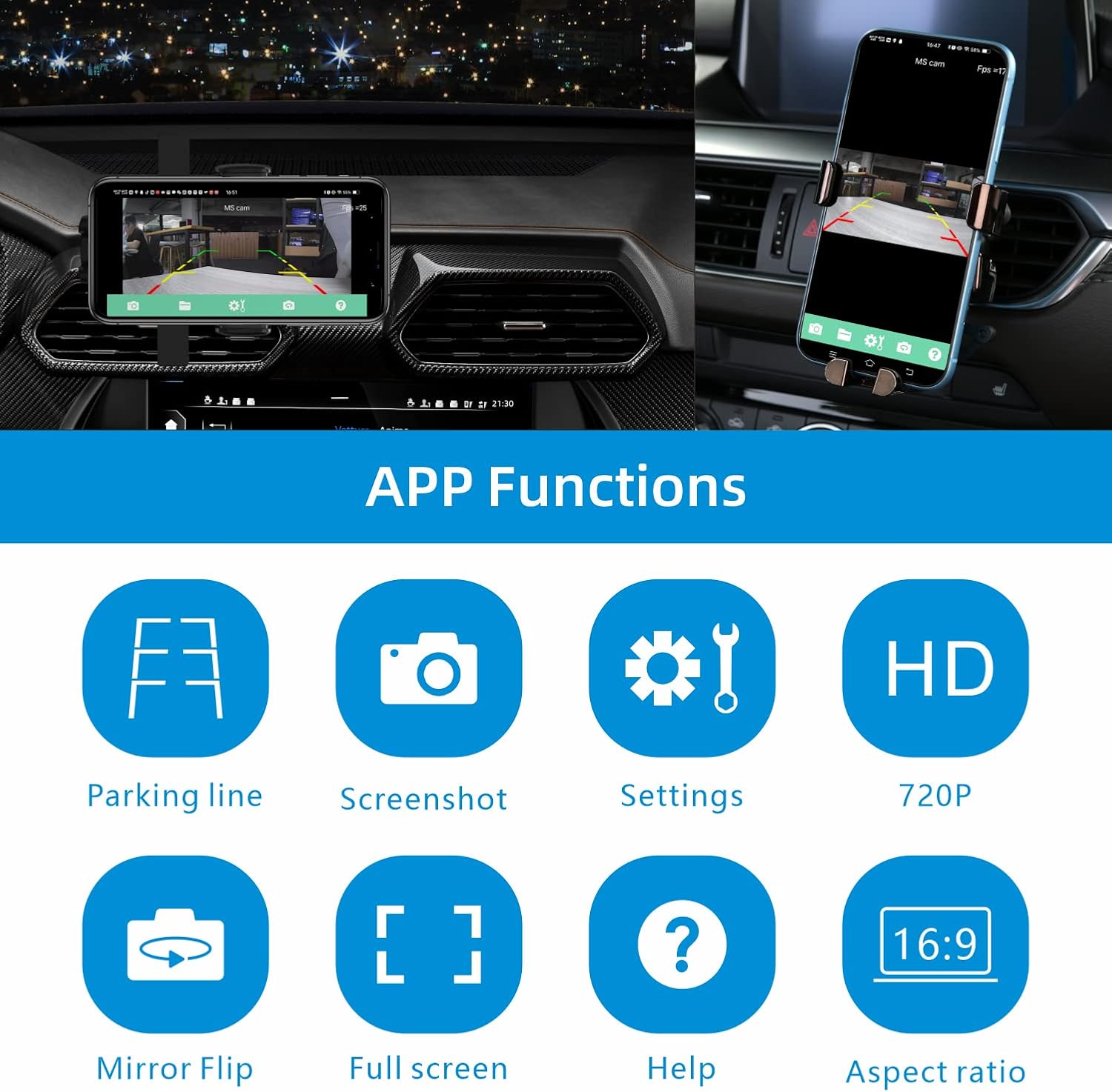 - HD color image and good night vision--Equipped with high-definition color CMOS sensor, the camera can provide clearer picture (1280*720P) and better reversing experience. 6 infrared night vision lights give a visibility of 30 feet in the dark.