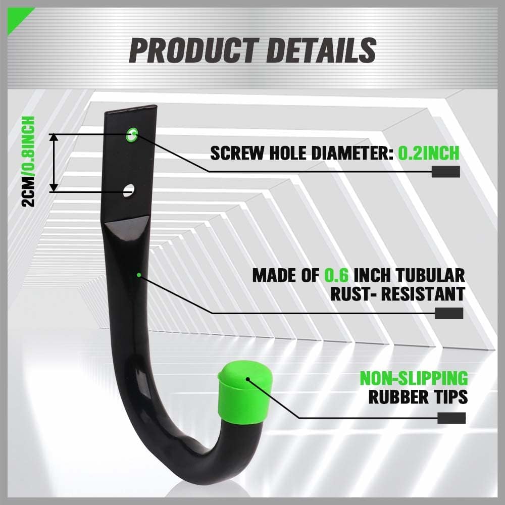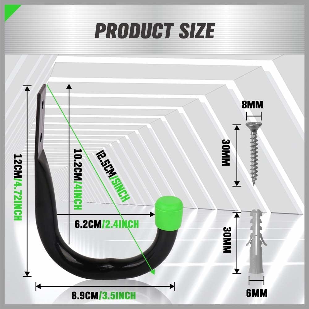 - 12 pack garage storage hooks with 24pcs screws and anchors(30mm), hook size: 4.7in x 3.5in(L x W)