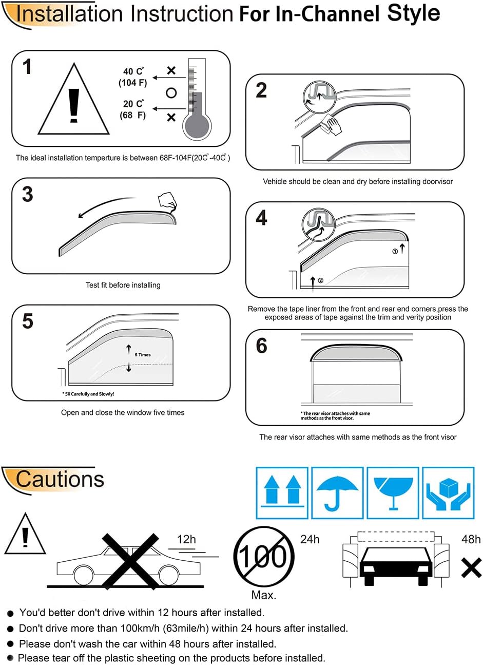 - 【MAKE TRAVEL ENJOYABLE AND SAFE】: You can drive in comfort with our rain guards, without worrying about the noisy wind, chilly snow, annoying rain sprays,blazing sunshine. It help improve ventilation to reduce window fogging keep sight clearly make rides safe.