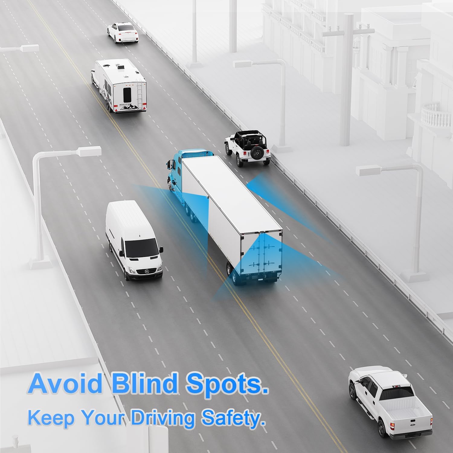 - ★ Rear & Side View Cameras with Infrared Lights: Cameras with 18 infrared lights make it possible for you to drive safely in the dark, giving you the best night vision. Featuring with high/low temperature resistance (-4℉-198℉) and IP69 Waterproof, it works perfectly in any extreme weather. (It can be applied to furrion pre-wired mount, please ask us for bracket adapter.)