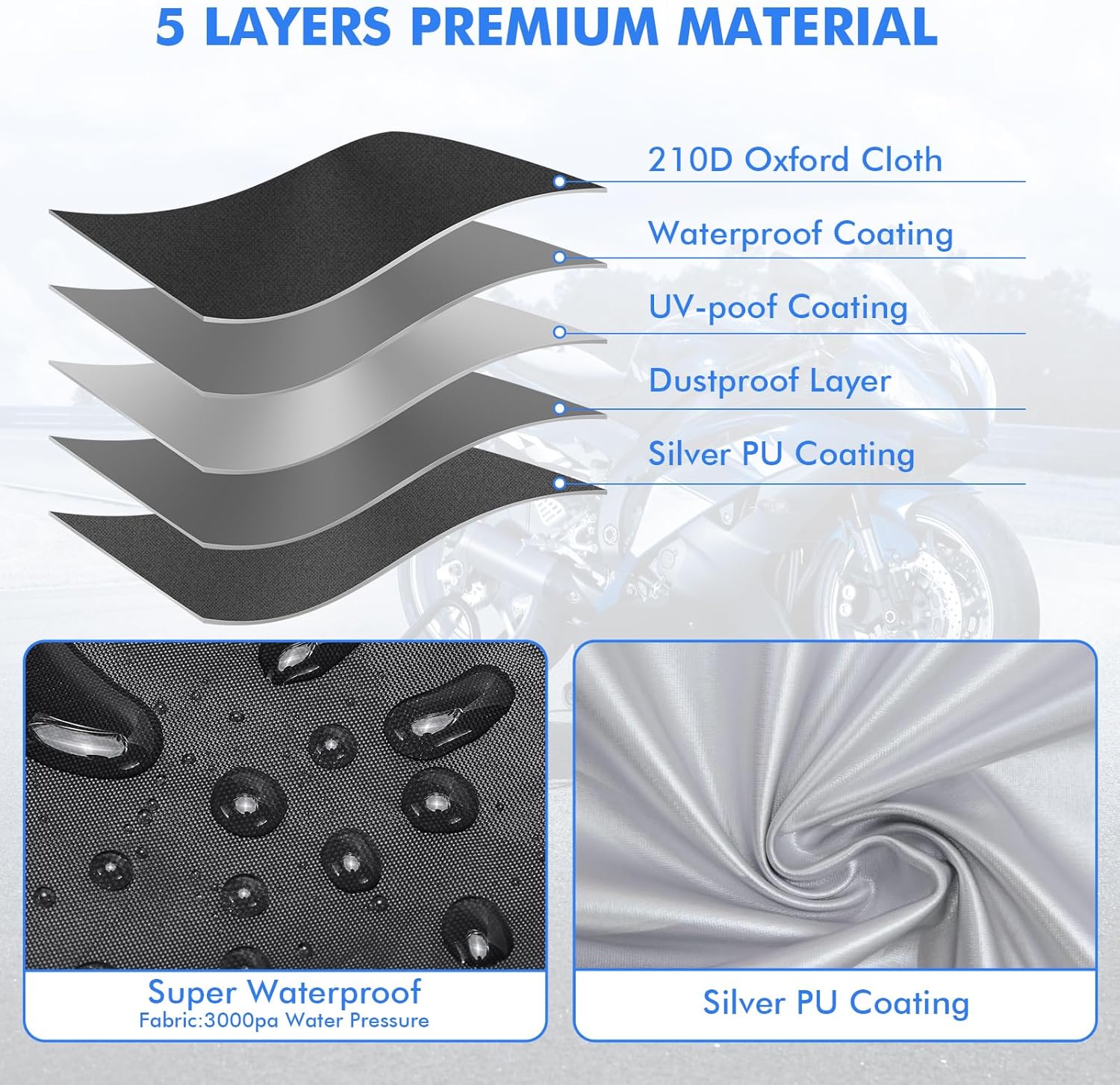 - Ultimate Rain Protection: Shield your motorcycle from torrential downpours with our high-performance motorcycle cover. Its 2500 super water pressure ensures unparalleled waterproofing, keeping your motorcycle dry even in the bad weather conditions