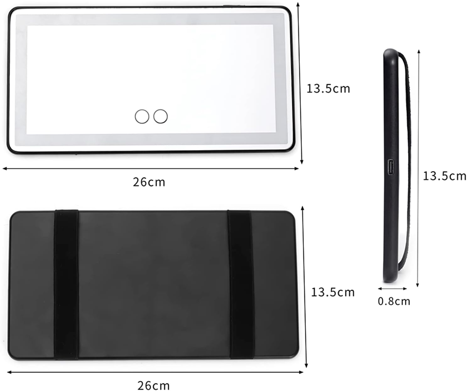 - [General Vehicle Design & Simple Installation] The slim profile of our vanity car mirror with lights measures a vehicle-friendly 10.25 (L) x 5.3 (W) x 0.4 (H) inches, fitting a wide range of vehicles from compact cars to SUVs. Its high-density fabric elastic band is specifically chosen for aviation-grade stability, making this led mirror for car visor both sturdy and easy to install.