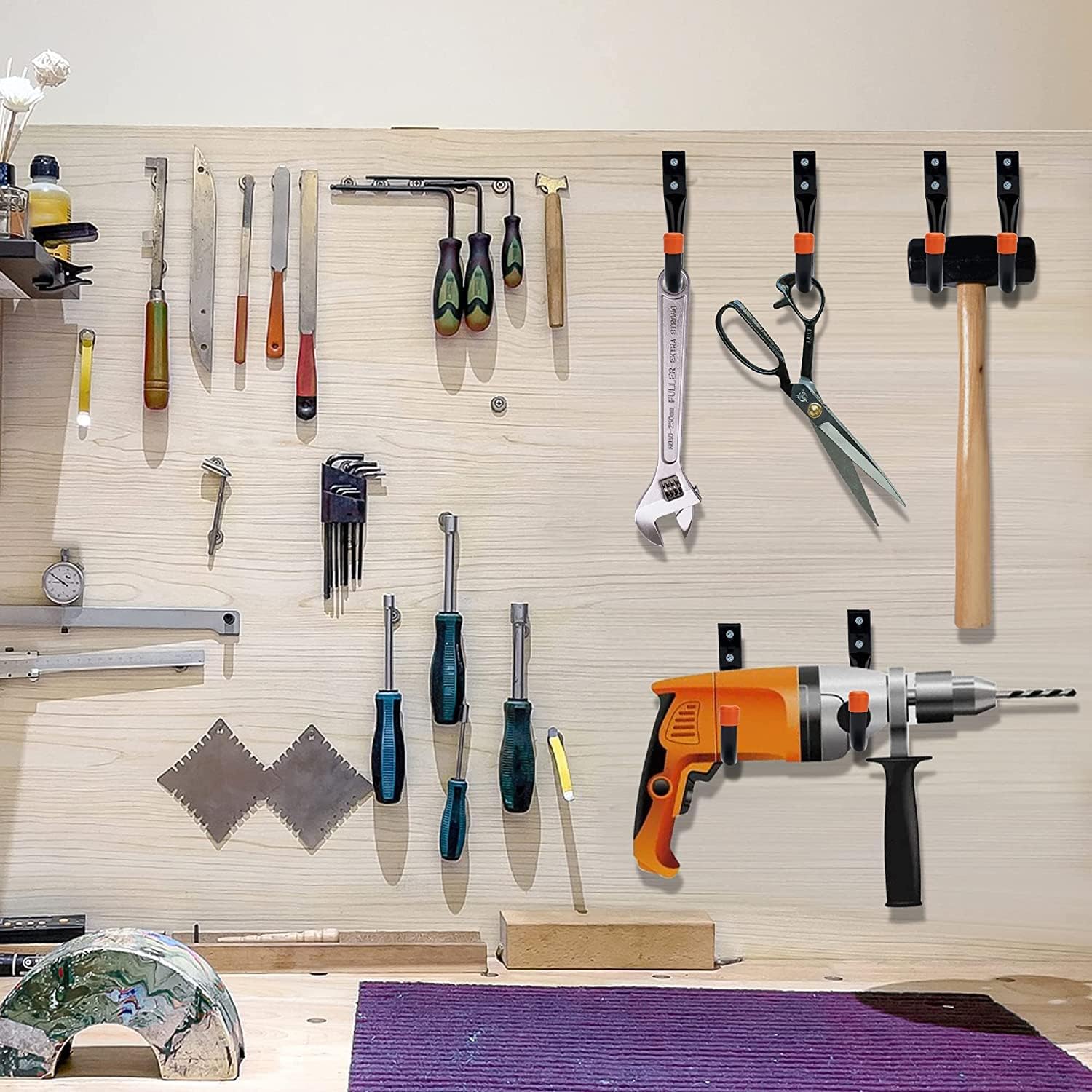 - Garage Hooks Are A Convenient Storage Device, Usually Mounted On The Walls Or Ceiling Of A Garage, For Hanging A Variety Of Items. It Helps You Organize Your Garage Space By Hanging Things Like Tools, Ladders, Backpacks, Etc., So That They Don'T Take Up Floor Space And Provide More Room To Move Around.