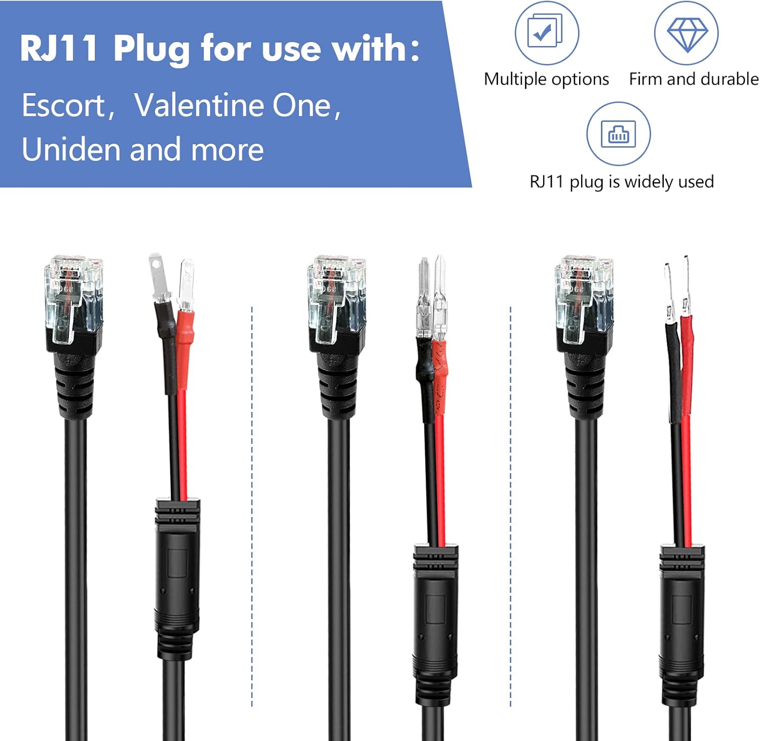 Radar Detector Hardwire Power Cord, Rearview Mirror Plug Cable,with Inline Fuse Holder,Suitable for Uniden Escort Beltronics Valentine One Cobra Whistler Radar Detector,3-Piece Set,13.7'' (RJ11)