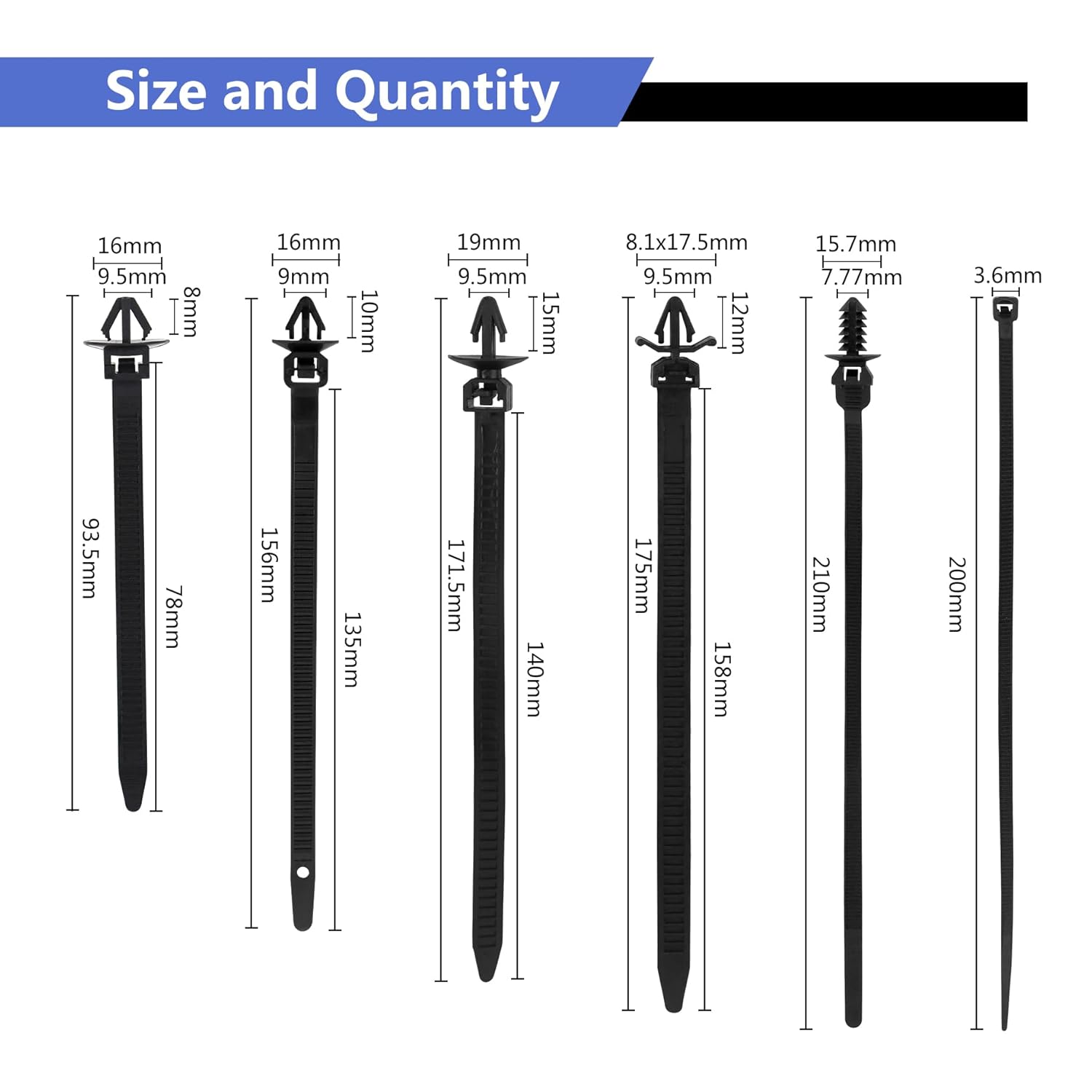 - Great Assortment of Size: This Auto Wire Routing clips kit Fits Loom 3/8" To 3/4", includes 165pcs contains 10 different sizes car clips, universal shape and size will meet all your needs, replacement for Honda GM Mazda Jeep Wrangler Ford etc
