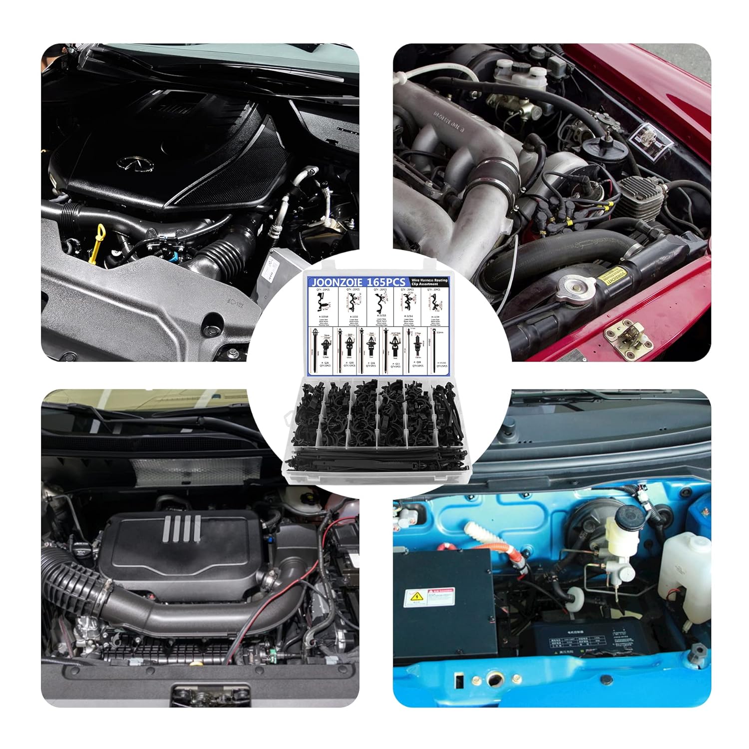 - Save Time And Money: Joonzoie Automotive clips assortment retainer set have 10 common sizes.no more worry about your lost or damaged body fasteners,our auto fender clips set provides you with the safest protection. Easy to install and use, no need to spend more money on repairs or car parts stores