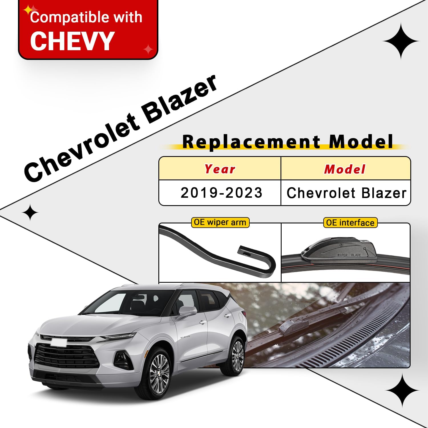 - {FITMENT}: Replacement for 2019 2020 2021 2022 2023 Chevy Chevrolet Blazer front rear windshield wiper blades.