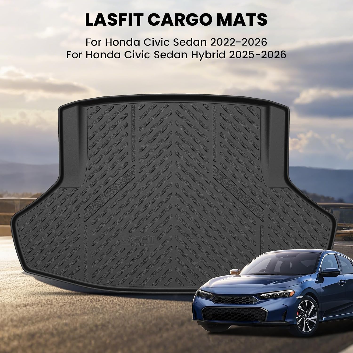 LASFIT Trunk Mat for Honda Civic Sedan 2022-2026 & Civic Sedan Hybrid 2025-2026, All Weather TPE Custom Fit Trunk Liner Trunk Tray Cargo Mat Cargo Liner Cargo Tray (Not for Hatchback/Type-R)