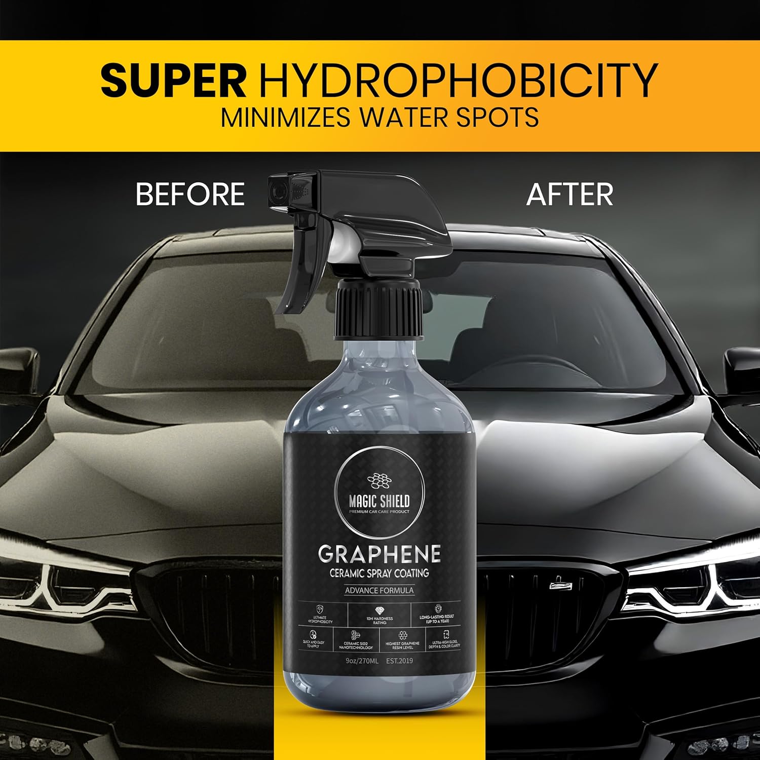 - ⏳ Long-lasting Protection: Magic Shield Graphene Spray's advanced graphene-based formula creates a protective layer that defends against scratches, chips, and other damage, ensuring prolonged beauty for your vehicle.