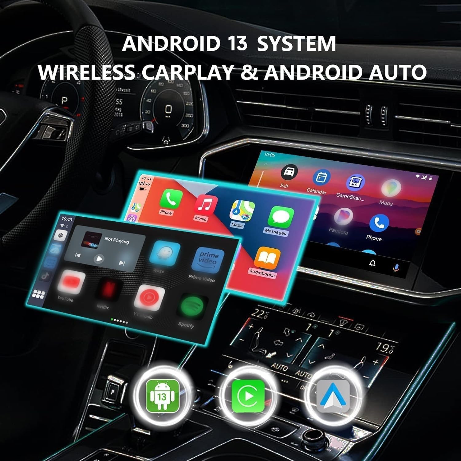 - 【Plug & Play, Auto Connect, TF Card Support】The video box Android CarPlay wireless adapter takes just seconds to pair your car and phone. All the applications and original car control methods of wired CarPlay will remain intact, and you can easily use voice commands like "Hi Si-ri" or "Hey G-e." Additionally, the adapter supports TF card functionality for added convenience.