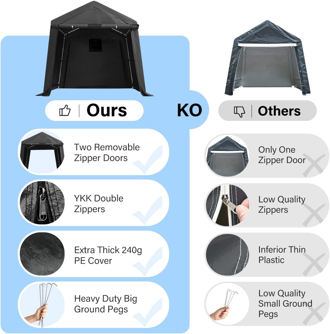 • 【Various Use】✔The portable storage shelter can be a motorcycle storage shelter, ATV storage shed, bike storage tent, or small vehicle garage shelter. It is also suitable for small lawnmowers, firewood or any other gardening tools.