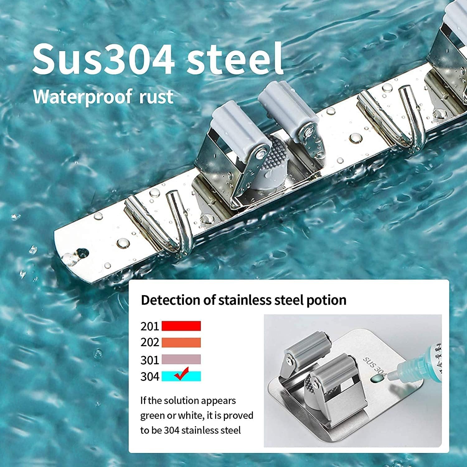 - DURABLE MATERIAL: The mop broom holder heavy duty is made of high quality 304 stainless steel and silicone, which is sturdy, rust-free, waterproof and has great load-bearing capacity.