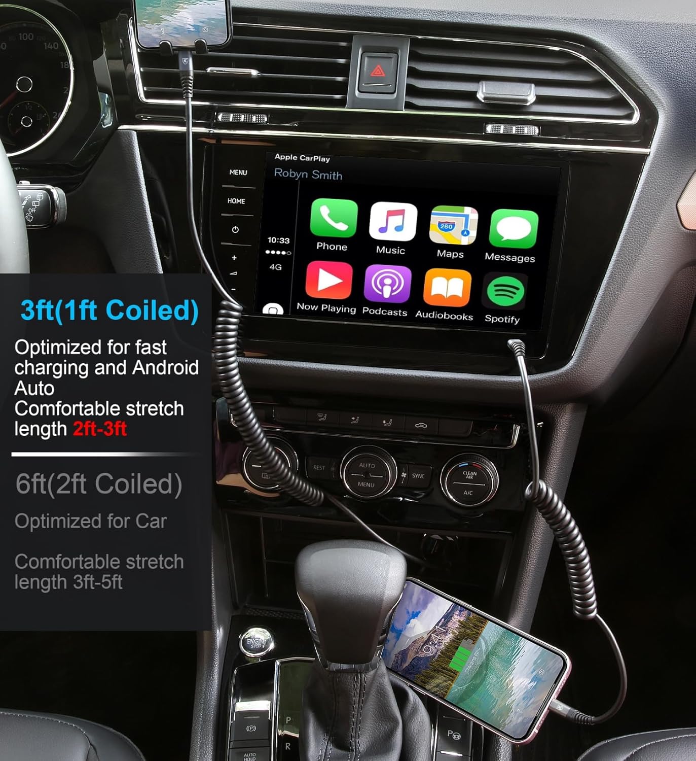 - USB C to Lightning iPhone Charger Cable for Car : Retractable iPhone car charger with spring shape design, portable and not tangled. It can well save the use of space in the car and say goodbye to the hassle of data cable clutter and tangles.
