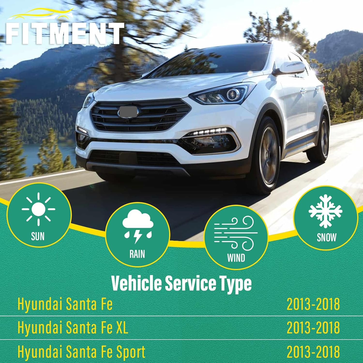 - [FITMENT1]: Replacement for 2013 2014 2015 2016 2017 2018 Hyundai Santa Fe 26inch + 14inch front with 13inch rear windshield wiper blades.