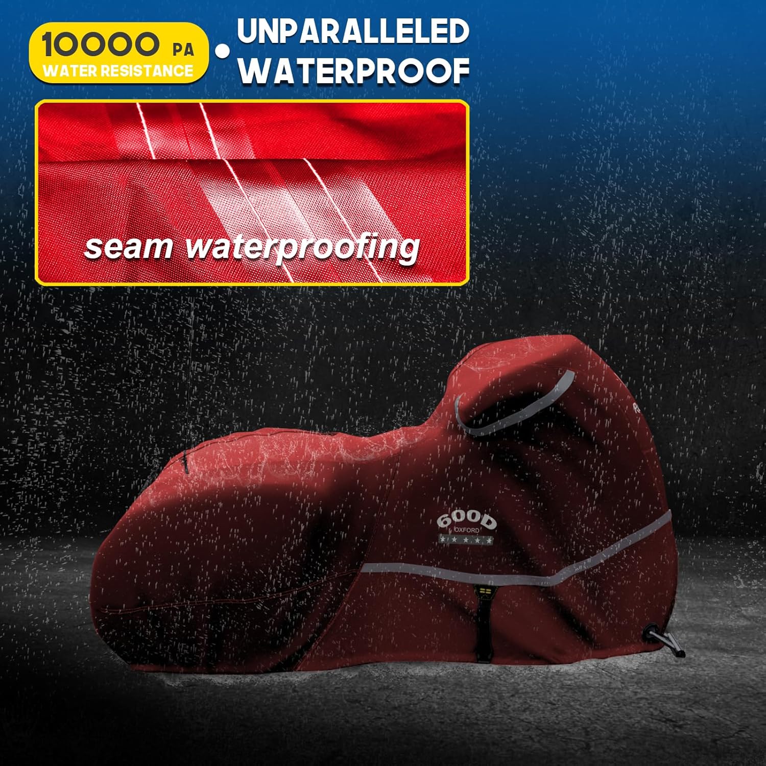 Rosefray Motorcycle Cover with Side Box Heavy Duty 600D Waterproof for Touring Models Harley Davidson Road King,Road Glide,Street Glide, Electra Glide,Low Rider-ST Indoor & Outdoor Storage Red