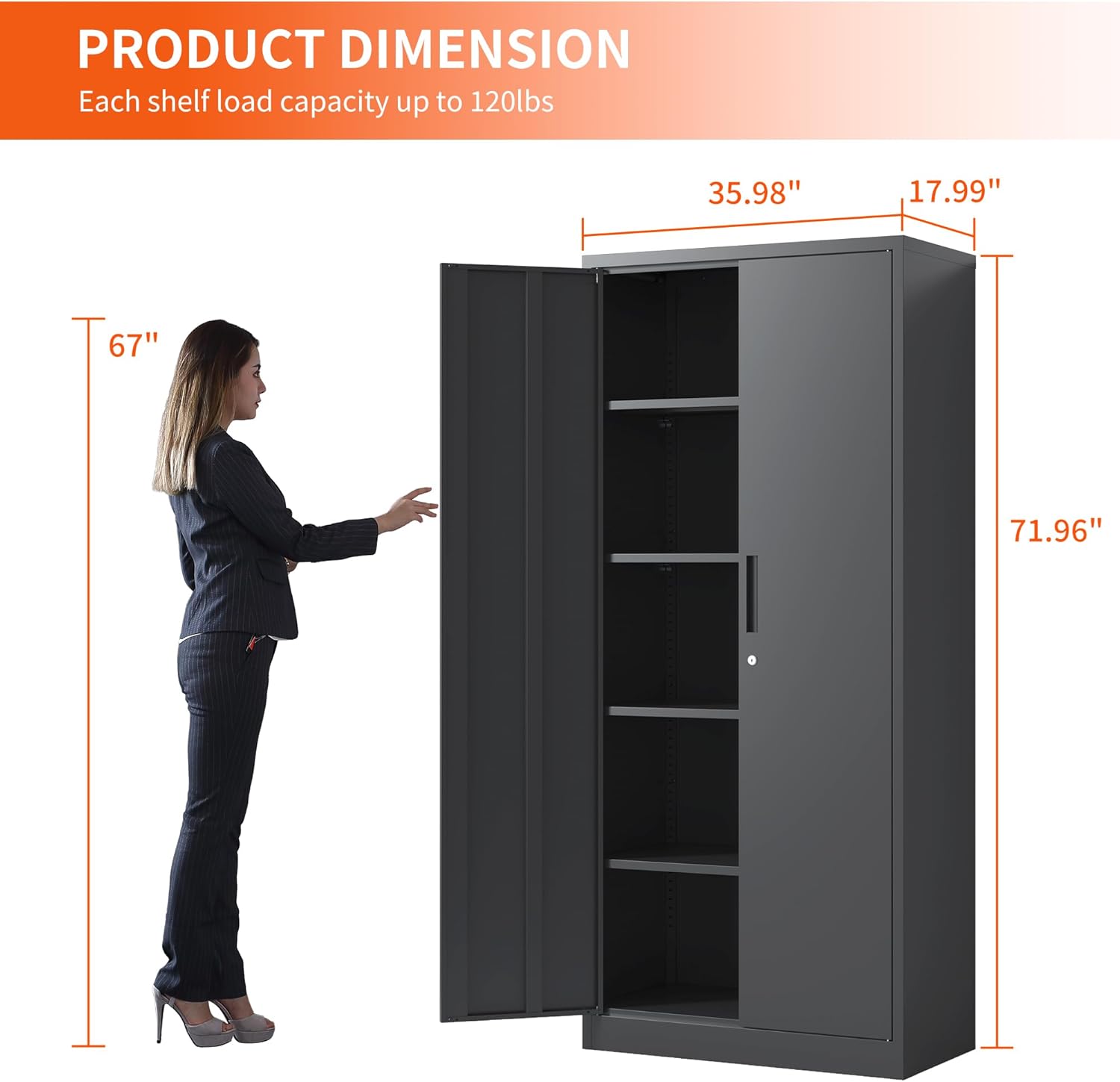72'' Garage Storage Cabinet, Lockable Storage Cabinet with Adjustable Shelves, Steel Tool Cabinets for Home, Office, Garage, Require Assembly, Black