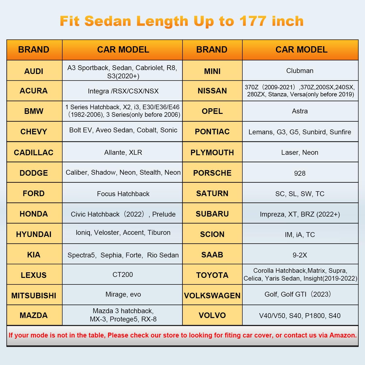 - Universal Fit for Sedan---Car cover SIZE: 450x175x150cm/177''X67''X59''inch, fit most sedan. Please Measure Your Car's Length First. Elastic pendulum and buckle can be adjusted freely. Come With A Large Enough Portable Storage Bag To Keep Your covertor para carro contra agua