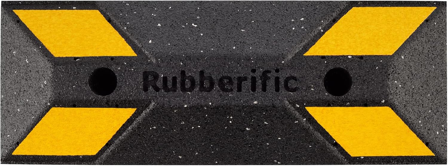 Rubberific Heavy Duty Rubber Parking Stop Durable Easy to Install Reflective Parking Curb Garage Car Stopper for Indoor and Outdoor Use (2 Pack)