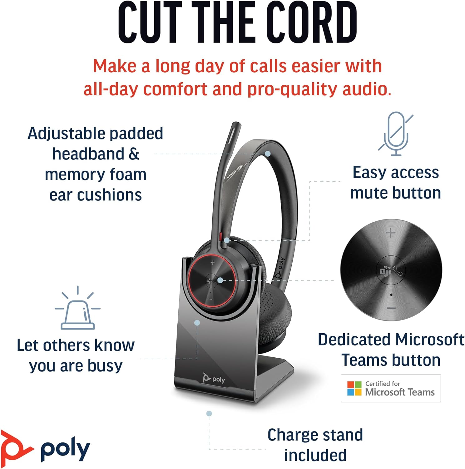 Poly Voyager 4320 UC Wireless Headset & Charge Stand (Plantronics) - Stereo Headphones w/Noise-Canceling Boom Mic - Connect PC/Mac/Mobile via Bluetooth-Works w/Teams (Certified), Zoom-Amazon Exclusive