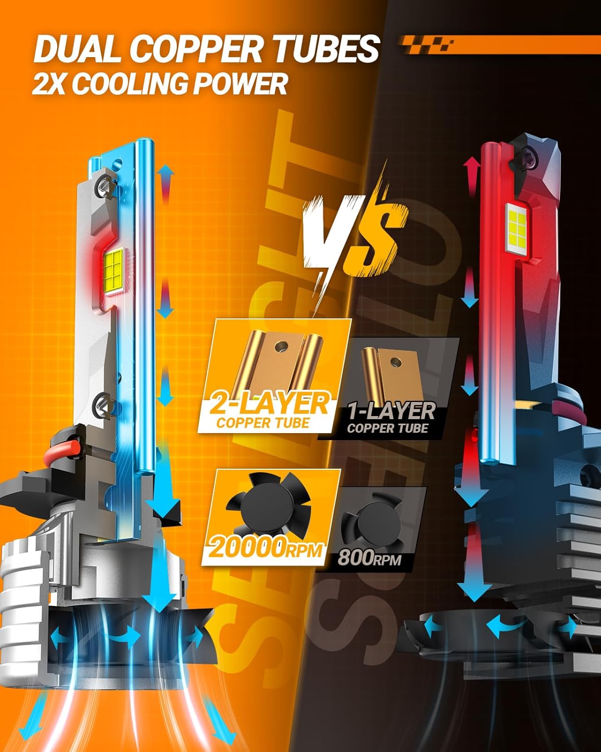 - Over 50,000 Hours Long Lifespan: 9005 H11 combo with the double cooling copper tube and 20,000 RPM cooling turbo fan helps speed down the core temperature, reached a perfect balance of long-lasting lighting and service life