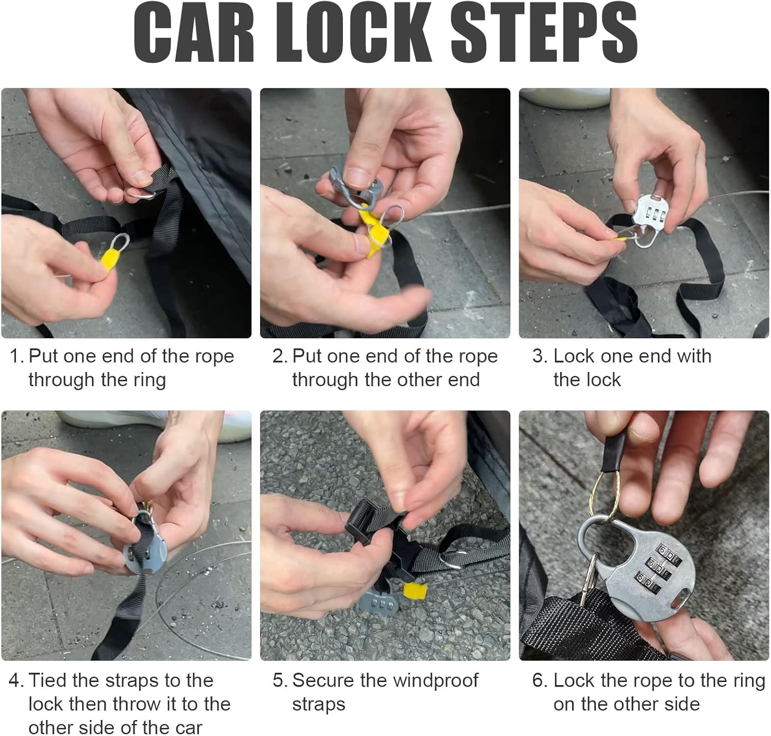 - 3 Windproof Details: windproof buckle, windproof strips and elastic belt on the tail edge, so that your car cover will not be blown away even in the face of strong wind, which is very good to protect your car