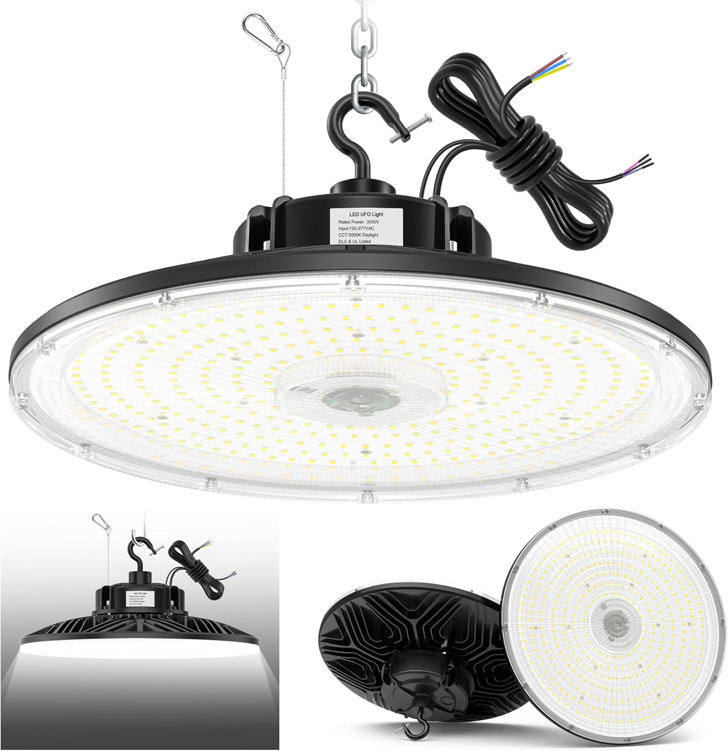 300W UFO LED High Bay Light 1-10V Dimmable, 5000K Daylight 42000LM, UL DLC Listed Low Bay LED Lights for Workshop Factory Warehouse, IP65 Waterproof Shop Lights Low Bay Lighting 100-277VAC Input