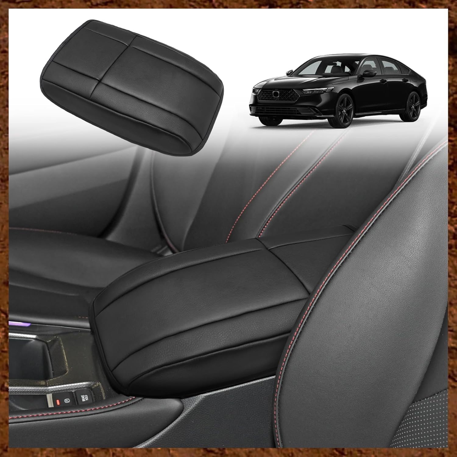 Muslogy for Accord 2025 2024 2023 Center Console Cover Armrest Pad Vegan Leather Extra Soft Armrest Lid Protector Compatible with Honda Accord LX EX Sport Hybrid EX-L Sport-L Touring (V1 Black)