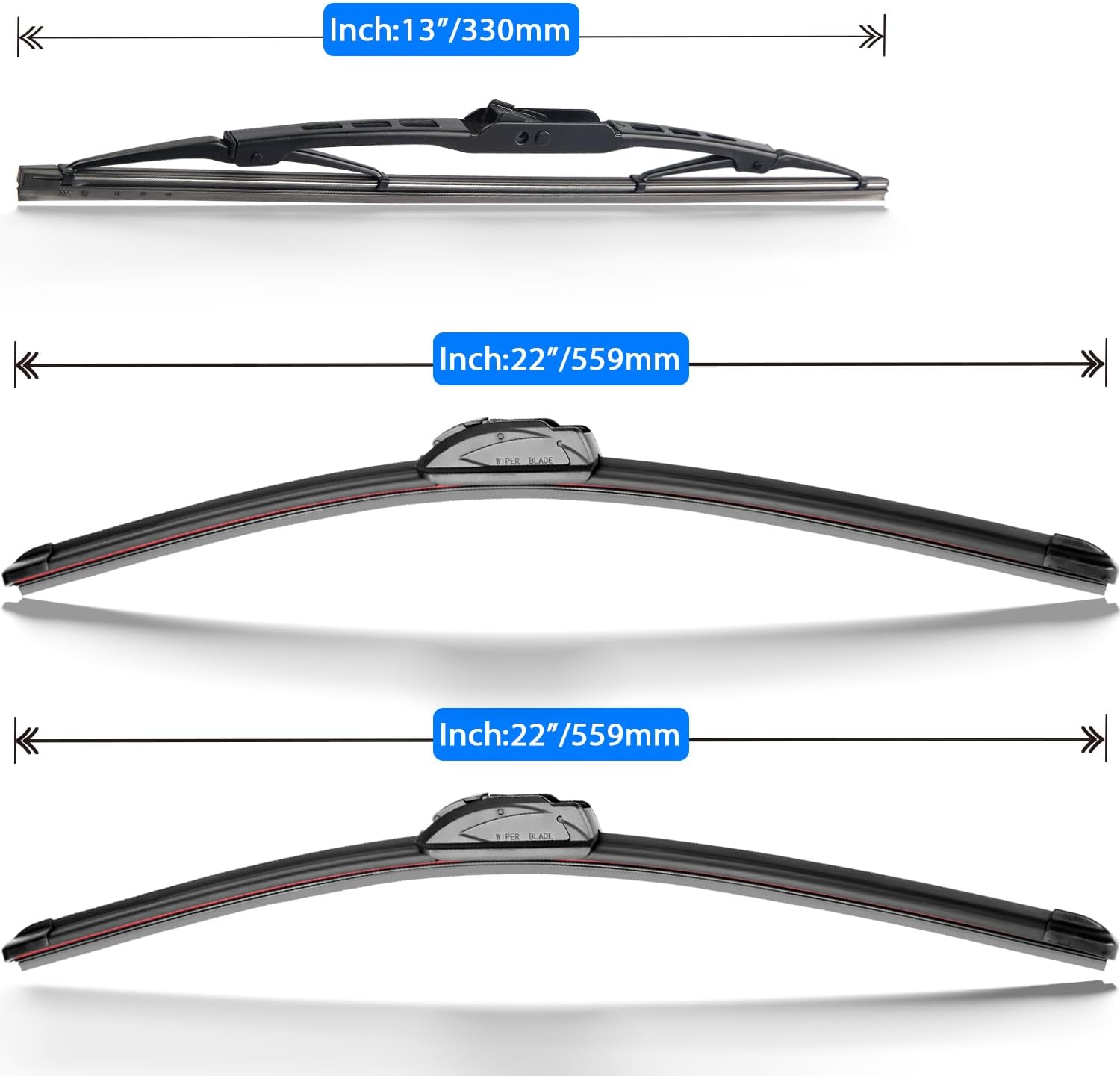 Windshield Wiper Blades Replacement for 2004-2008 Chrysler Pacifica / 2015-2020 GMC Yukon Chevrolet Suburban Tahoe Cadillac Escalade Front Rear Wipers Blade Set - 22" 22" 13"