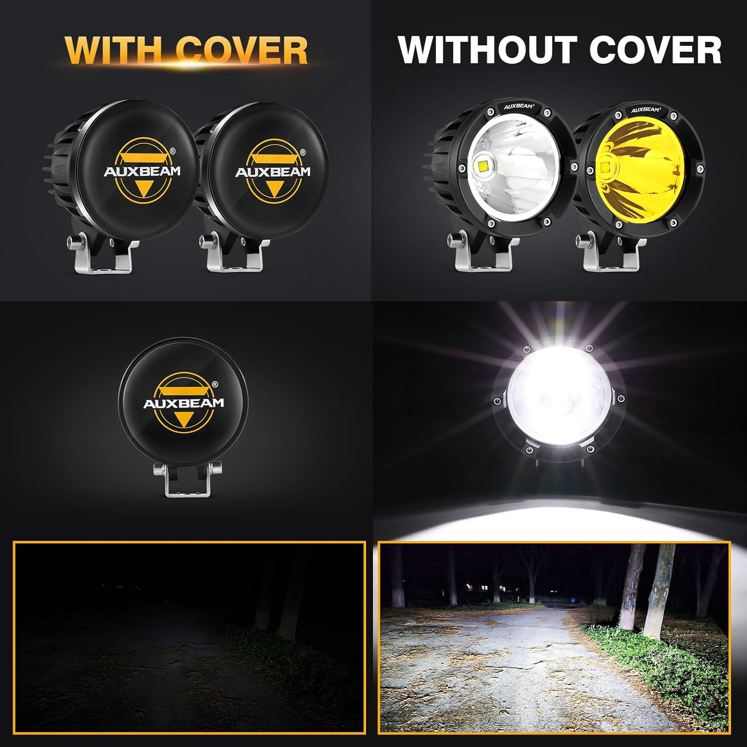 - 【Trusted Brand Guarantee】Package comes with 2x black protective covers. Auxbeam offers a 24-month guarantee and 24-hour online service commitment. Customers can contact us at any time for any pre-sales or after-sales questions. Your satisfaction is always what we strive for.