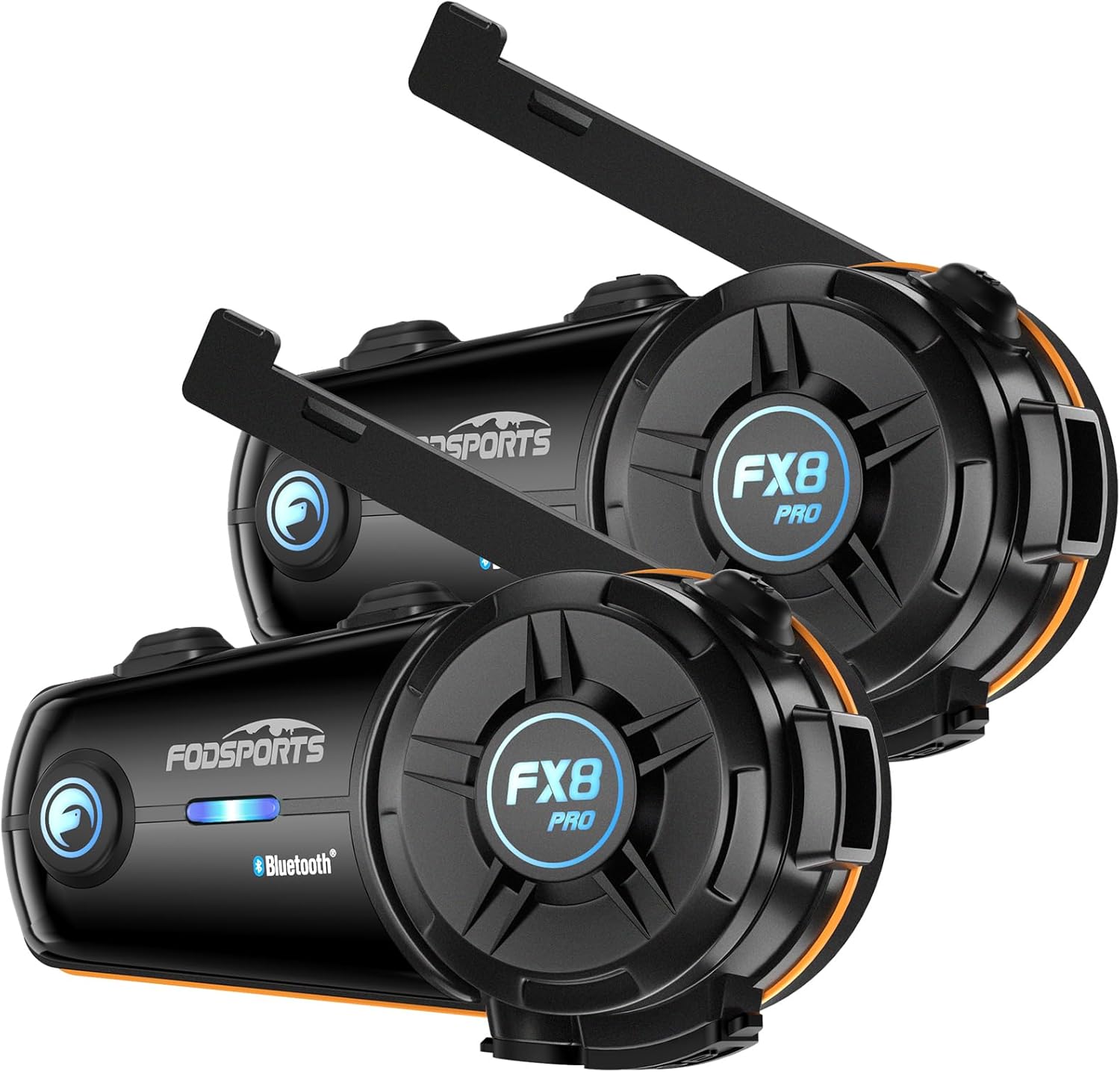 - 【10 Riders Group Bluetooth Intercom】FODSPORTS FX8 PRO motocycle bluetooth headset is designed with innovative folding antenna and low power consumption high quality bluetooth dual chip, one chip for intercom and one for audio function, which makes the communication signal is more stable and the intercom distance more far when riding. The motorcycle intercom supports 8 riders to talk to each other clearly within a range of up to 2000 m/1.2 miles, bringing you a better riding experience! (Note: 2 riders with 500m communication distance)