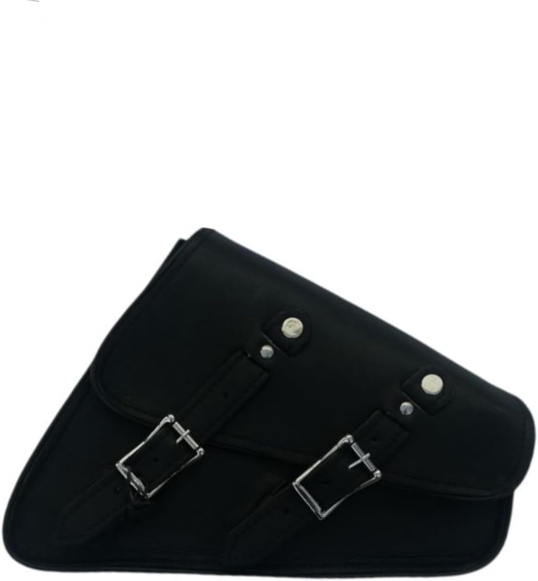 GARGOYLE BELLS Premium Naked Leather Swing Arm Bag For Motorcycle Left Side Solo Bags Saddle Bags For Softails Choppers (Style-2, Black)
