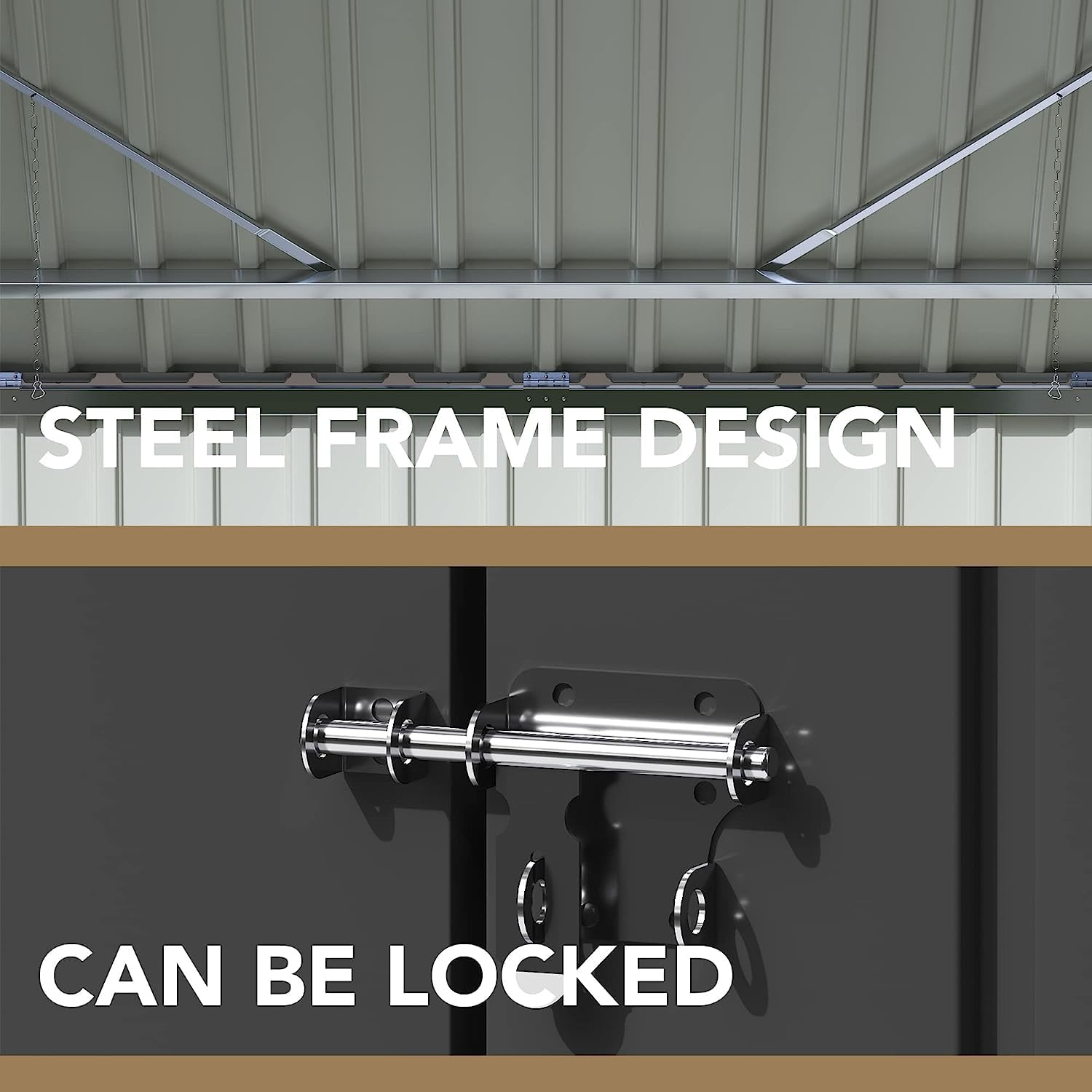 - [Reinforced Structure] The storage shed is constructed with a steel frame and is reinforced with additional metal inside the product to ensure stability regardless of wind or rain.In addition, an anti-rust coating is added to the surface