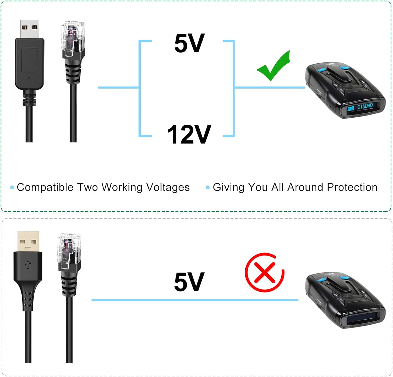 - ✅【Stable Working Performance】The radar detector cable adopts a new chip encryption technology to ensure that the radar detector can be stably turned on when the cable is connected to 5V or 12V USB interfaces,giving you all around protection wherever your adventures take you.