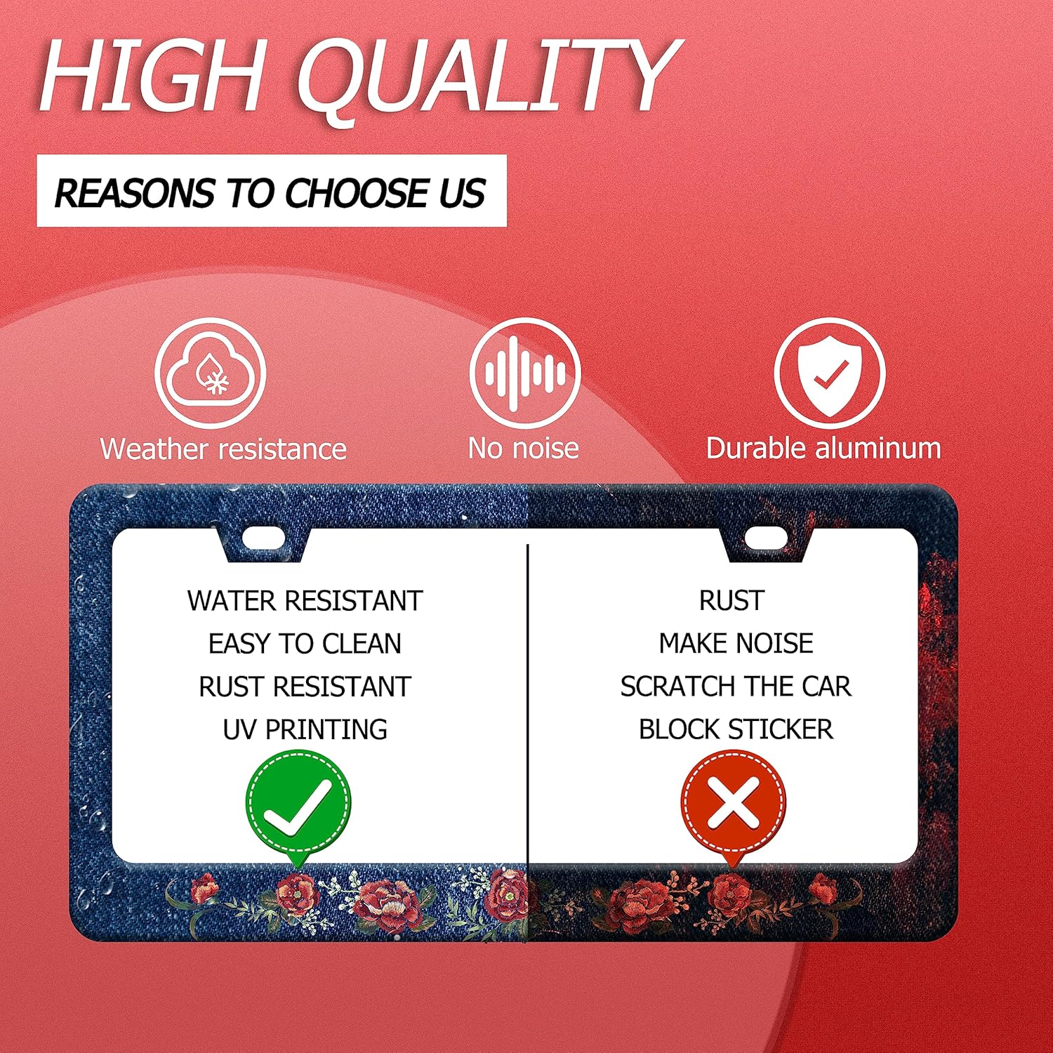 - Design:Use Advanced digital printing Protects license plate frames from Whether it's a car wash, heavy rain or hot weather, it still looks brand new,Let your car still be unique and stylish while driving on the road