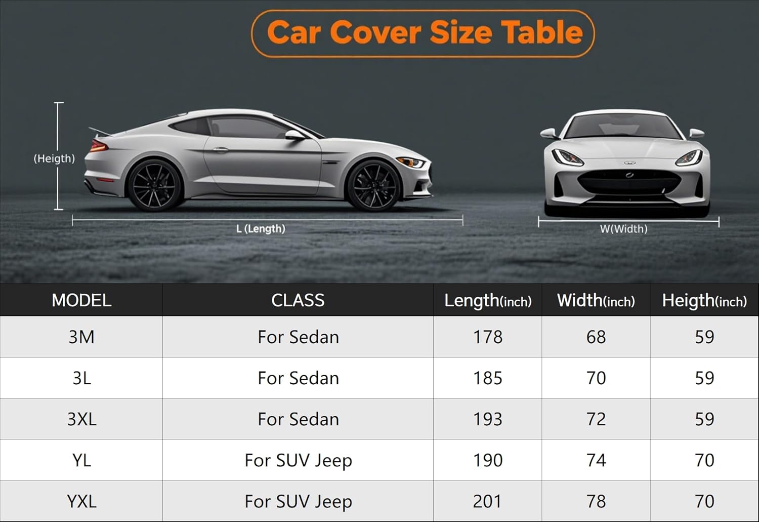 - 【Unique Design】-1 driver's door zipper for easy access. 2 The front and rear wind belts can fix the car cover in strong wind. 3 6 transverse orange reflective strips to remind others at night. 4 mirror pockets make the lid fit better. 5 The elastic hem at the bottom makes the car cover fit the car better.
