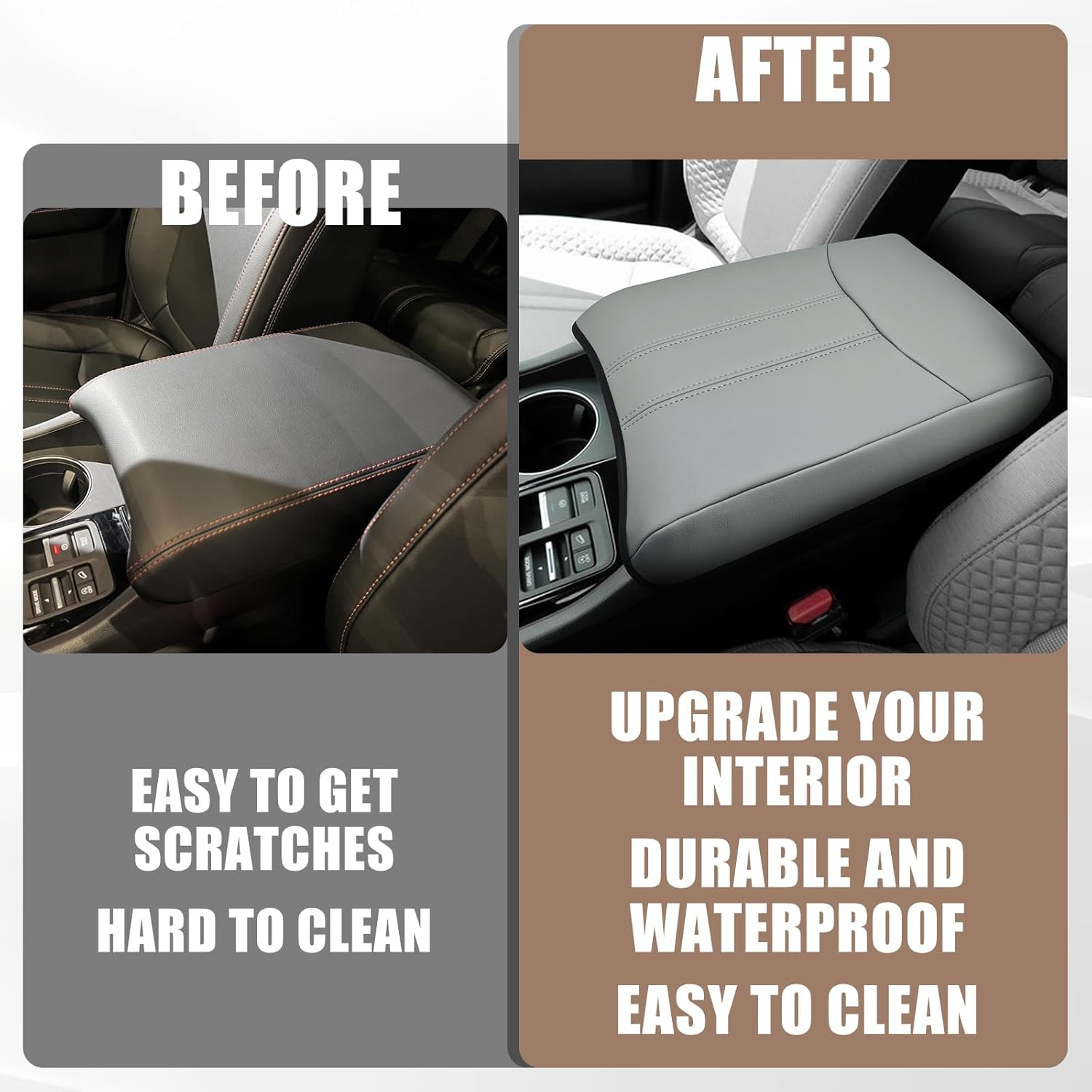 - Unique Design: Designed according to the OEM seat texture to make it match your interior perfectly and even better. Our armrest cover is crafted with high-quality Vegan Leather and an extra layer of foam, which is skin-friendly, breathable and soft.