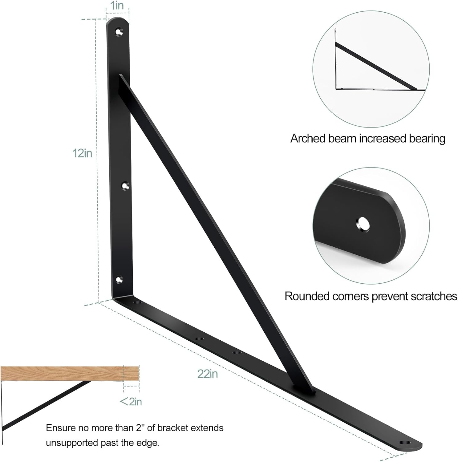 - Heavy Duty design, maxium support weight of 180lb for a pair of this shelf bracket. Designed to support 22 inches to 24 inches deep shelf. Matte black powder coat finish. resistant to corrosion and rust, durable. Creating a rustic, reclaimed, salvaged look,perfect for your home, office, garage, work space or anywhere else.
