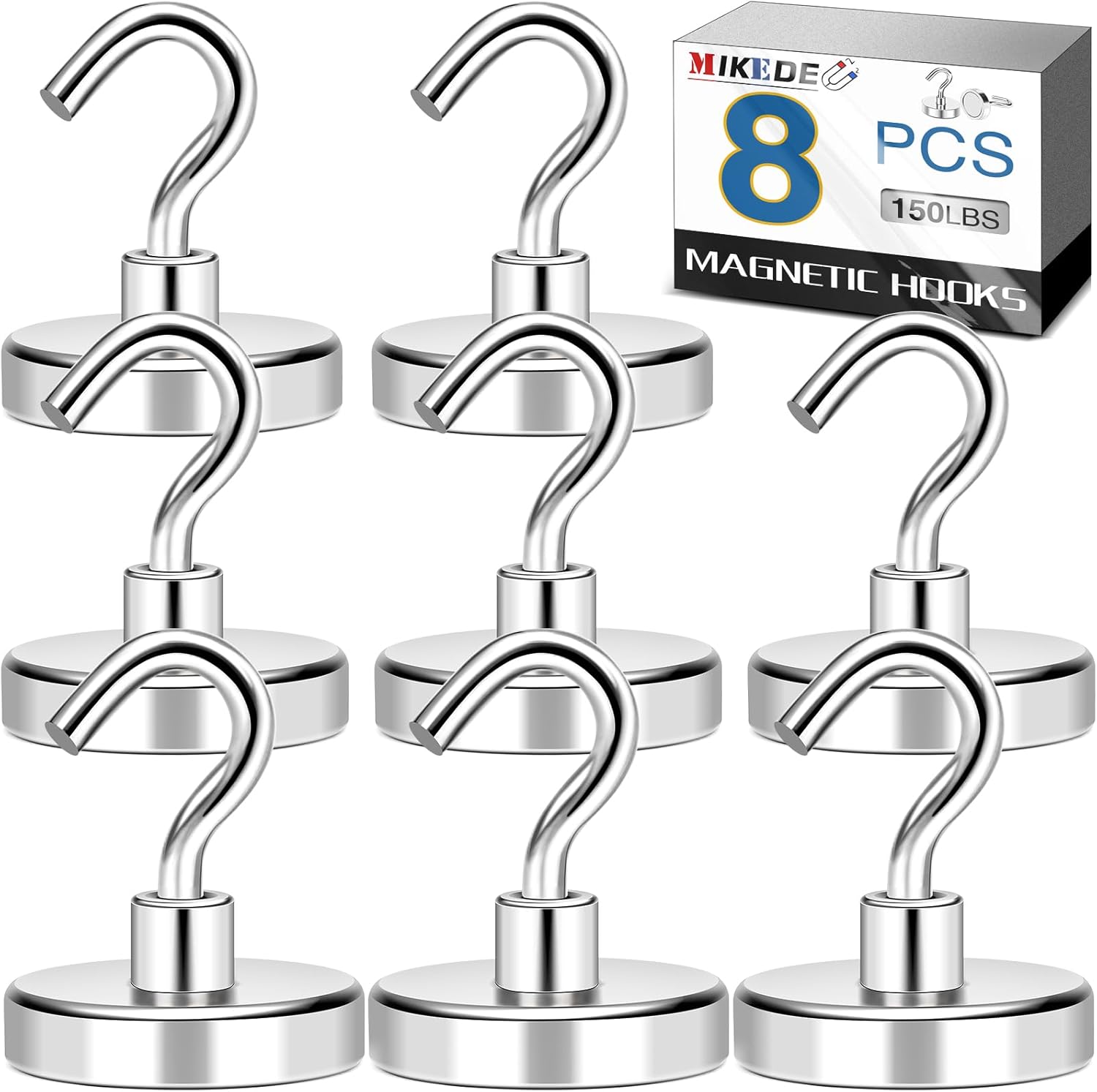 - 【POWERFUL MAGNETIC HOOKS】:Heavy-duty metal magnetic hook with a CNC machined steel base, embedded with a high grade super Nd-Fe-B, this magnetic hook offers strong pulling force under steel. As a leading seller of magnetic hooks, you can find any type of magnet hook you need in our store by searching for MIKEDE MAGNETIC HOOKS.