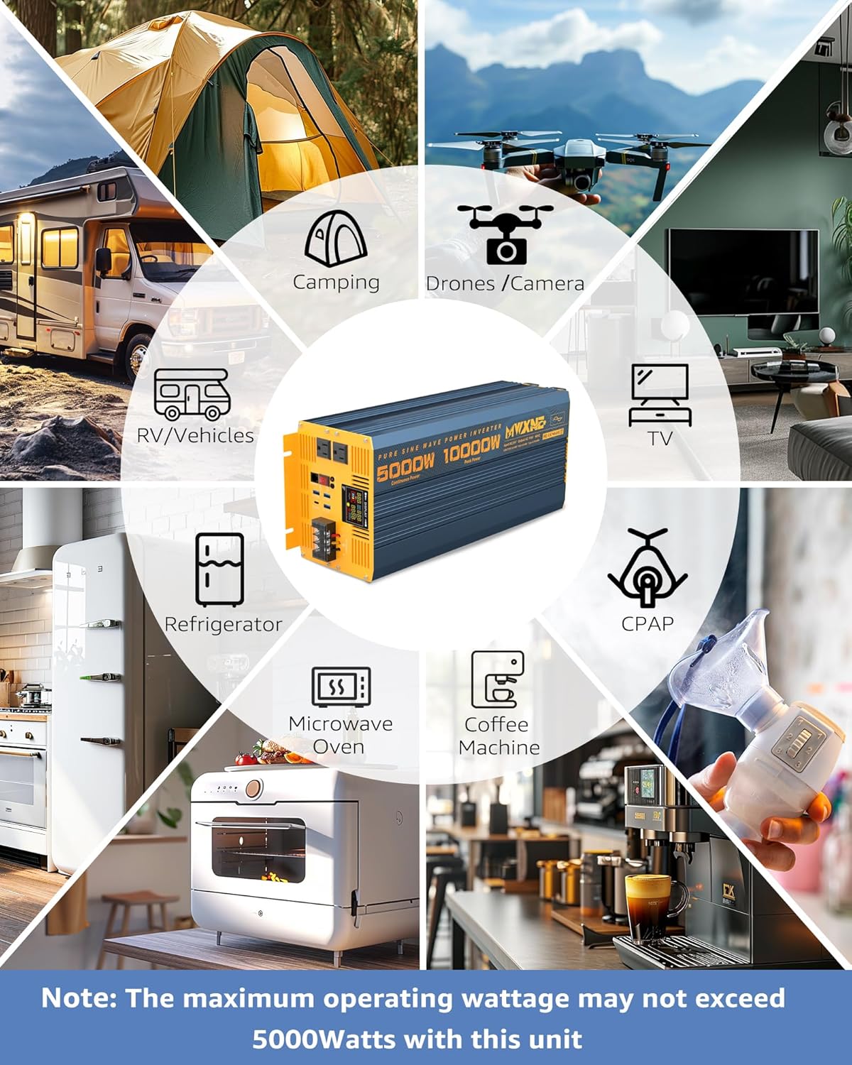 - 【24 MONTHS WARRANTY & FULL SET】 MWXNE Team offers 24 months warranty. Package includes 1x 5000W Pure Sine Wave Inverter, 1x User Manual, 2x Battery Cables, 1x Wireless Remote Controller, 1x Wired remote controller, Some Fuses, 1x Spanner, 1x Earth Wire. We provide 24/7 customer service. Please contact us by email if you have any question.